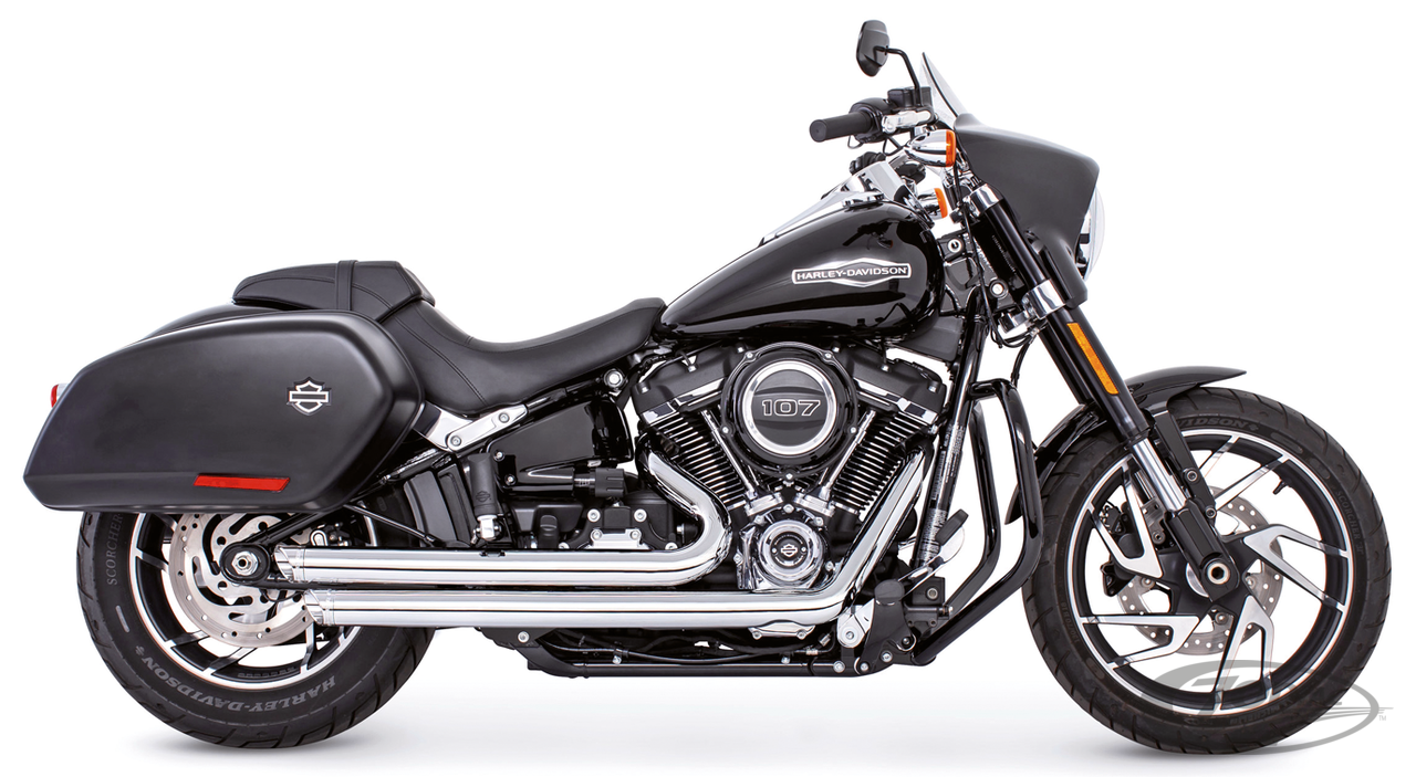 2018 to present SoftailRace versionRequires adapters when installed on FLHC & FLHCS Heritage, FLI Hydra-Glide Revival and FLSB Sport Glide models with saddlebag supportsTo mount on FLFB & FLFBS Fat Boy, FXBR & FXBRS Breakout or FXDR(S) the passenger peg relocation kit must be ordered separately, Black with black slash tips