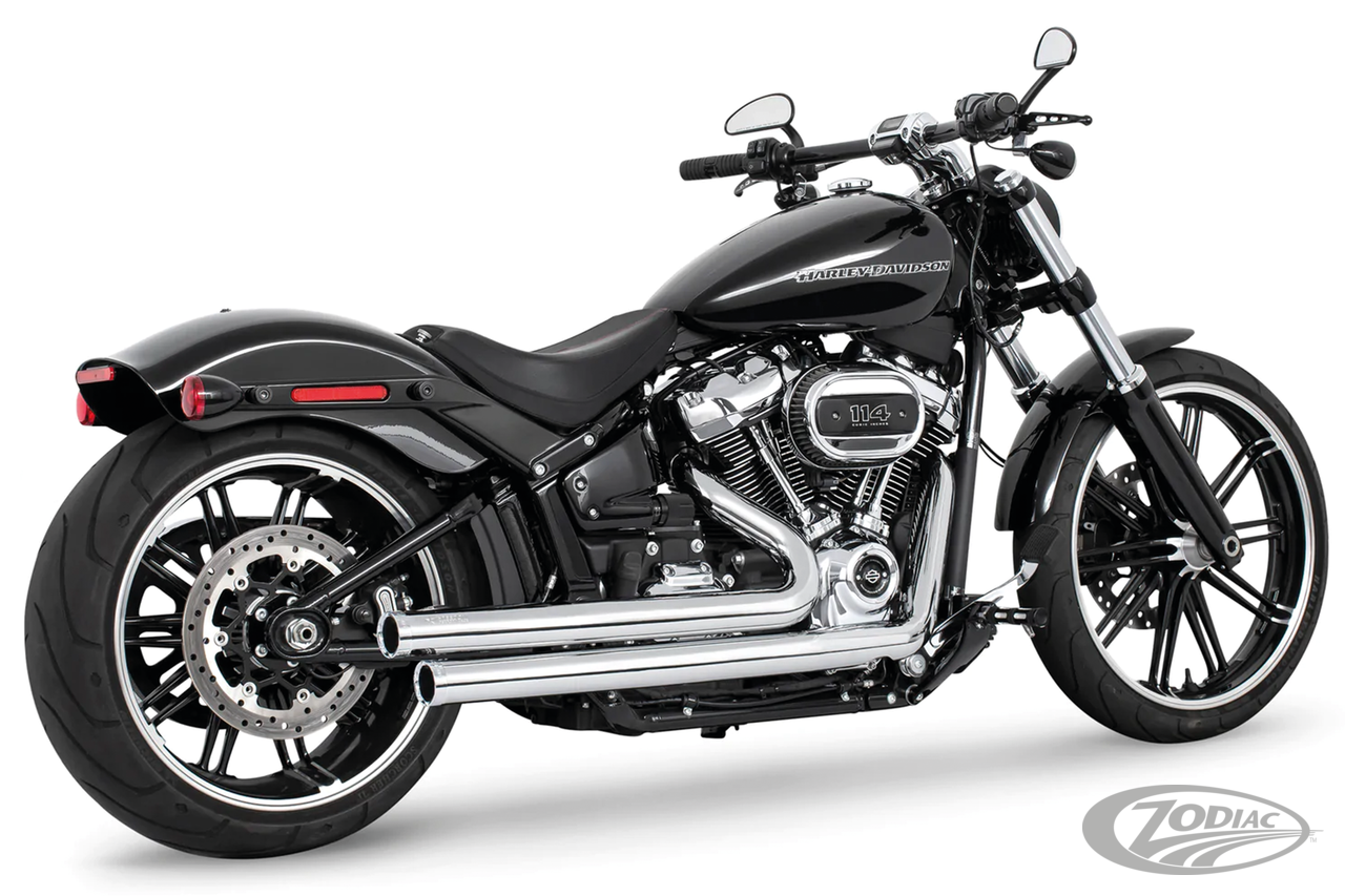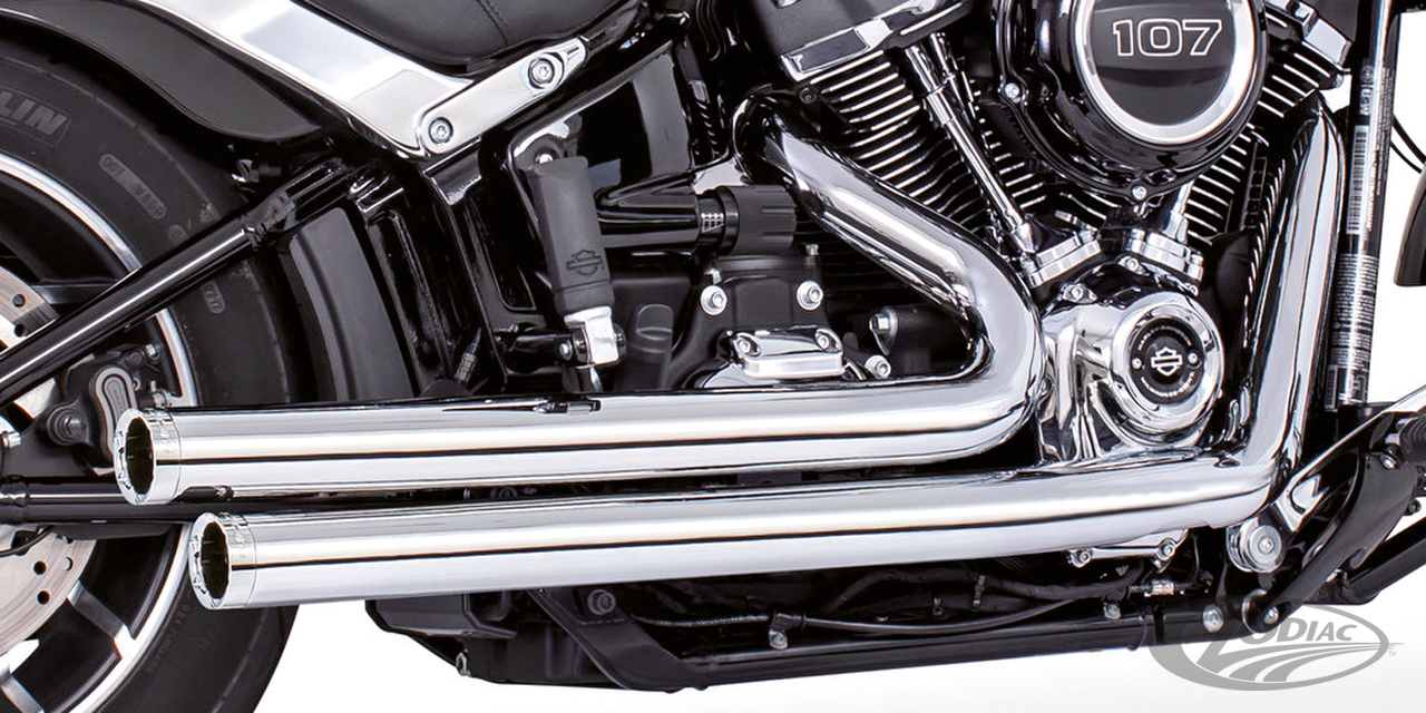 2018 to present SoftailRace versionRequires adapters when installed on FLHC & FLHCS Heritage, FLI Hydra-Glide Revival, FLSB Sport Glide and FXLRST Low Rider ST models with saddlebag supportsTo mount on FLFB & FLFBS Fat Boy, FXBR & FXBRS Breakout or FXDR(S) the passenger peg relocation kit must be ordered separately, Chrome with chrome tips