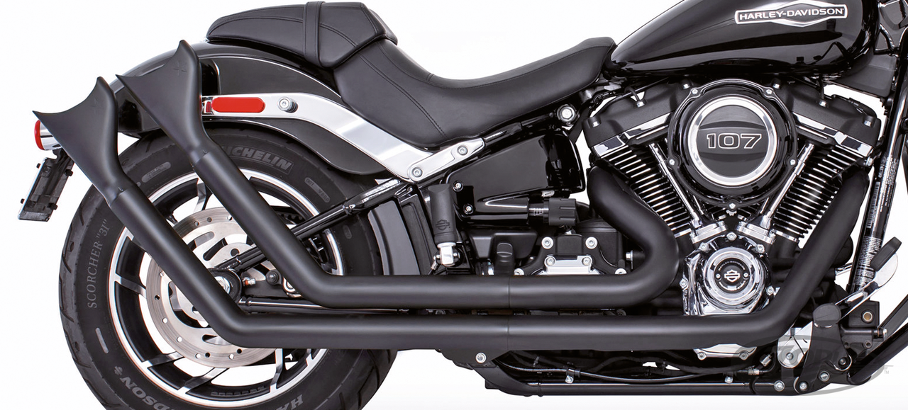 FEATURES & BENEFITS •2 step performance system for anti-reversion, full range torque and optimal horsepower •2 1/2" O.D. full 220º one-piece 16 gauge heavy duty heat shields •Giving you a chopper/bobber vintage look •Racing exhausts have removable baffles and Hot Rod sound, optional quiet baffles available •O2 ports & plugs provided for early models •Offered in Chrome or Black hi-temp finish •Complete with mounting hardware and brackets •All 2021 and later European models (Euro 5) require eliminators ZPN 744444 for the rear O2 sensor and digital tuning with Diag4Bike or similar to disable related CEL (Check Engine Light) and DTC's (Digital Trouble Code)