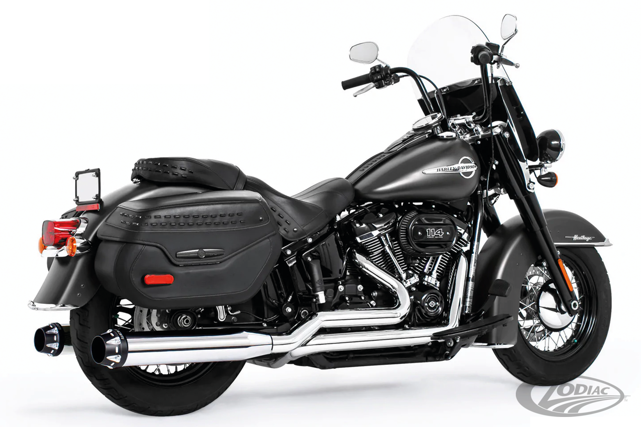 Softail 2018 to presentRace versionRequires adapters when installed on FLHC & FLHCS Heritage, FLI Hydra-Glide Revival, FLSB Sport Glide and FXLRST Low Rider ST models with saddlebag supports, Chrome with black sculpted tips