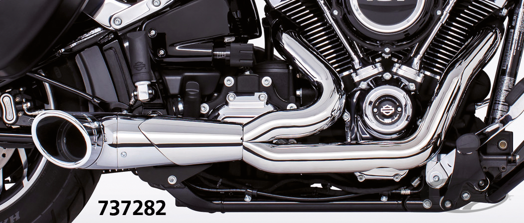 Fits 2018 to present SoftailRequires adapters when installed on FLHC & FLHCS Heritage, FLI Hydra-Glide Revival, FLSB Sport Glide and FXLRST Low Rider ST models with saddlebag supportsTo mount on FLFB & FLFBS Fat Boy, FXBR & FXBRS Breakout or FXDR(S) the passenger peg relocation kit must be ordered separately Note: All 2021 and later European models (Euro 5) require eliminators ZPN 744444 for the rear O2 sensor and digital tuning with Diag4Bike or similar to disable related CEL (Check Engine Light) and DTC's (Digital Trouble Code), All chrome, Turn-out end cap