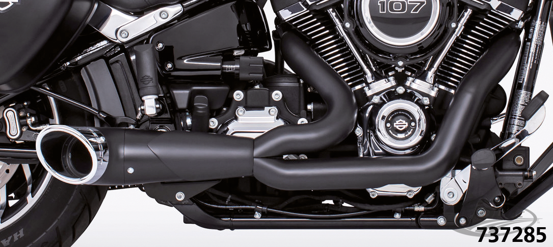 Fits 2018 to present SoftailRequires adapters when installed on FLHC & FLHCS Heritage, FLI Hydra-Glide Revival, FLSB Sport Glide and FXLRST Low Rider ST models with saddlebag supportsTo mount on FLFB & FLFBS Fat Boy, FXBR & FXBRS Breakout or FXDR(S) the passenger peg relocation kit must be ordered separately Note: All 2021 and later European models (Euro 5) require eliminators ZPN 744444 for the rear O2 sensor and digital tuning with Diag4Bike or similar to disable related CEL (Check Engine Light) and DTC's (Digital Trouble Code), Black with chrome Turn-out end cap