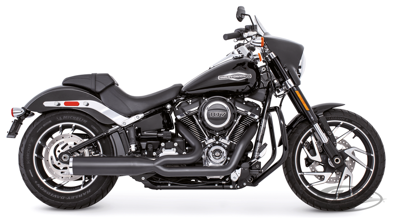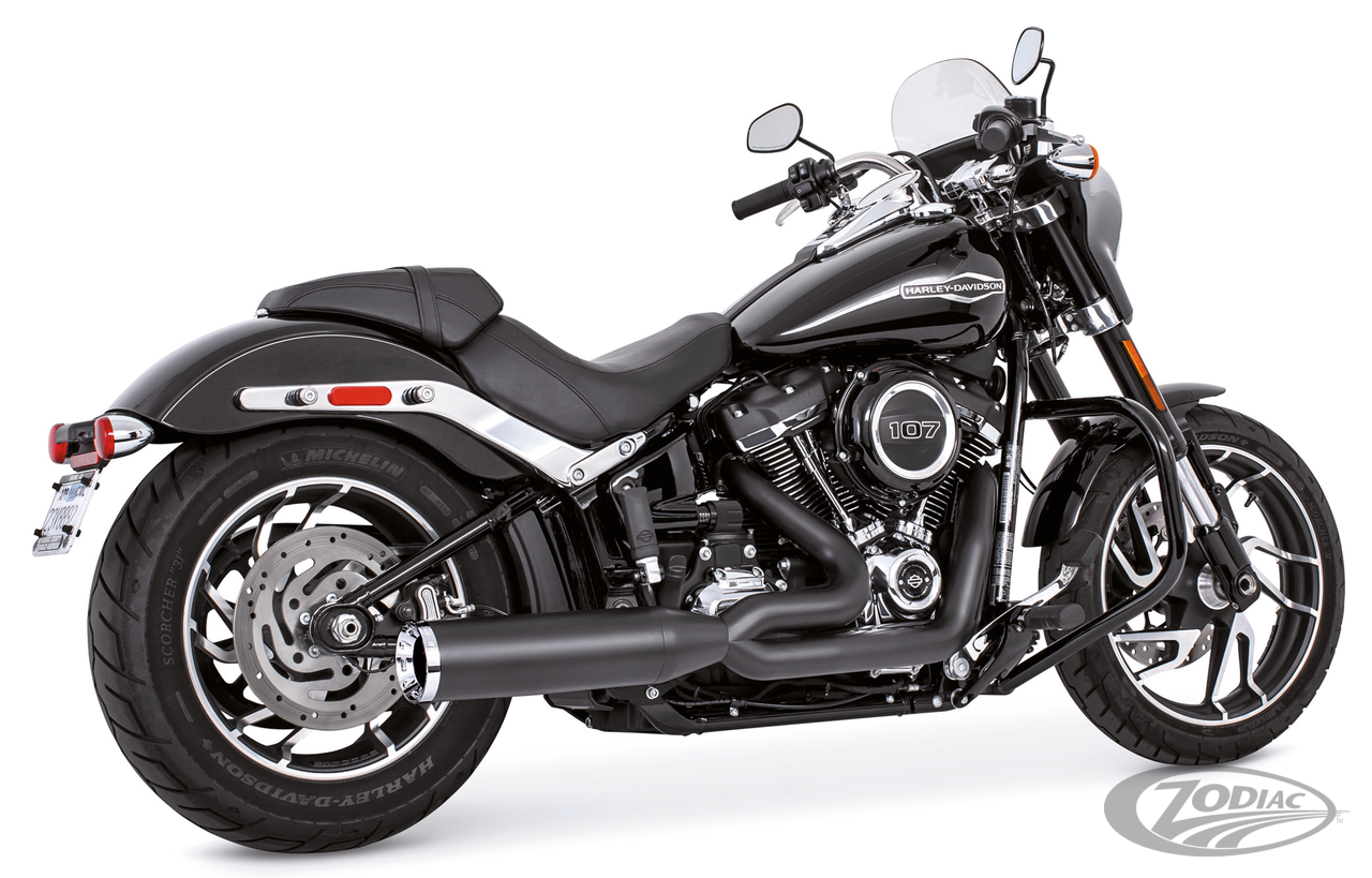 2018 to present SoftailRace versionRequires adapters when installed on FLHC & FLHCS Heritage, FLI Hydra-Glide Revival, FLSB Sport Glide and FXLRST Low Rider ST models with saddlebag supportsTo mount on FLFB Fat Boy or FXBR Breakout the passenger peg relocation kit must be ordered separately, Black with chrome straight tip