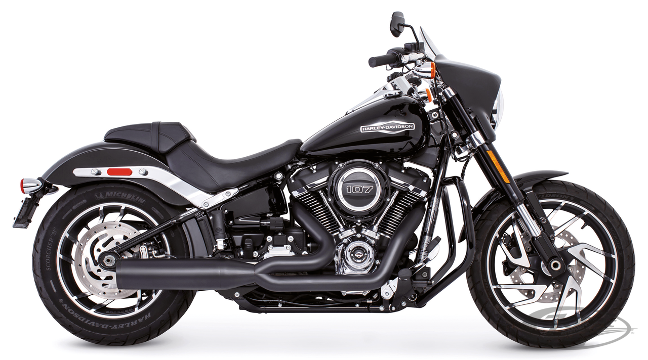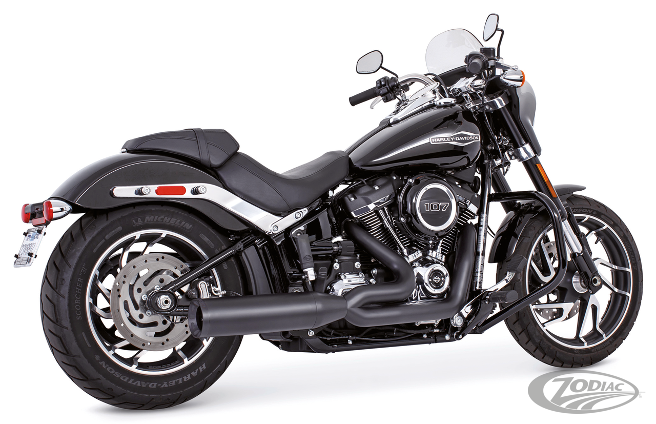 2018 to present SoftailRace versionRequires adapters when installed on FLHC & FLHCS Heritage, FLI Hydra-Glide Revival, FLSB Sport Glide and FXLRST Low Rider ST models with saddlebag supportsTo mount on FLFB Fat Boy or FXBR Breakout the passenger peg relocation kit must be ordered separately, All black with straight tip