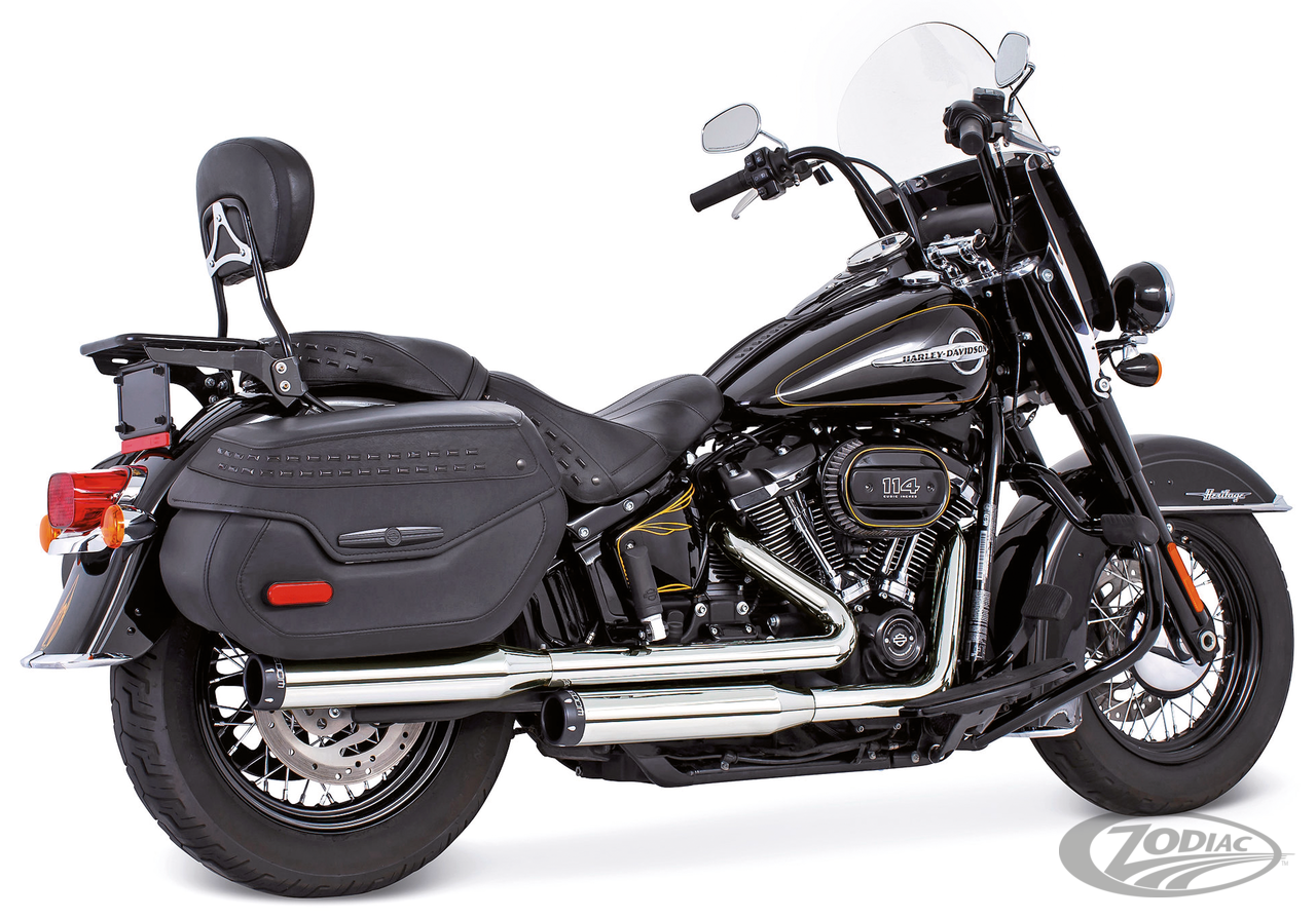 FEATURES & BENEFITS •3 1/4" mufflers that fit stock headers •Choice of distinctive styling billet end tips in either Chrome or Black finish •Racing exhausts have removable baffles, optional quiet baffles available •Complete with mounting hardware and brackets •Easy installation using stock mounting brackets •Acoustic packing for deep rich tone •Sold as pair •All 2021 and later European models (Euro 5) require eliminators ZPN 744444 for the rear O2 sensor and digital tuning with Diag4Bike or similar to disable related CEL (Check Engine Light) and DTC's (Digital Trouble Code)