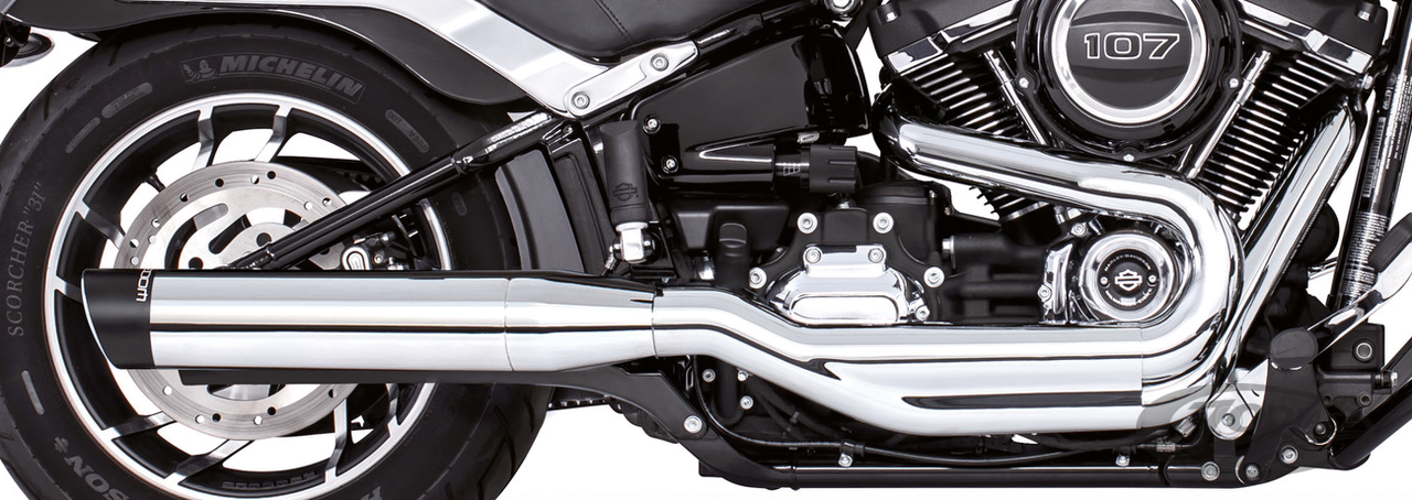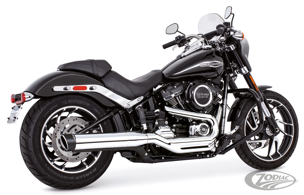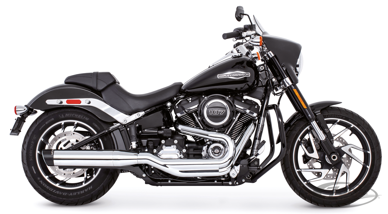 Softail FLSB Sport Glide 2018 to presentRace version, Single muffler, Chrome with black sculpted tip