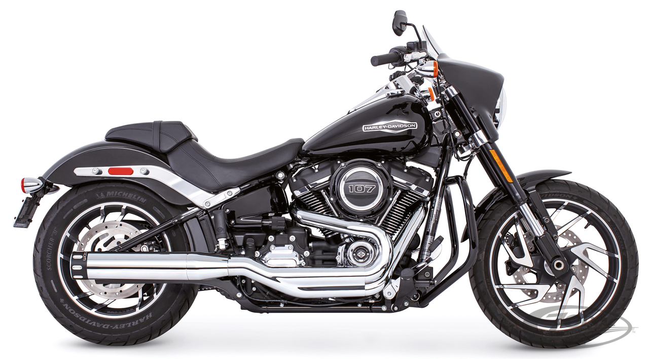 Softail FLSB Sport Glide 2018 to presentRace version, Single muffler, Chrome with black sculpted tip