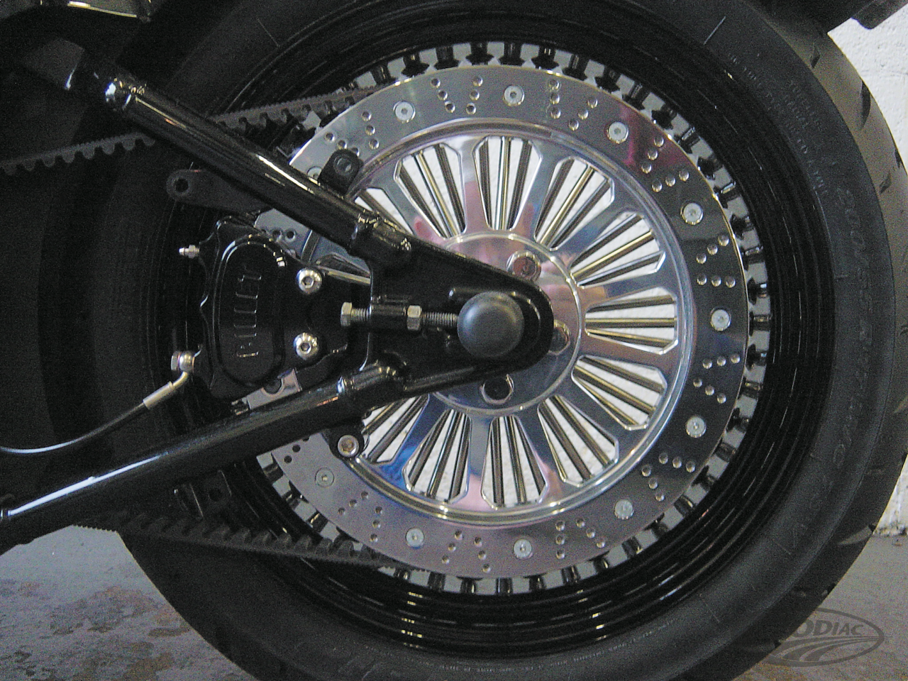 Harrison "Billet" brakes are famous for their impressive stopping power. Their pulley brake system is in fact a pulley with two disc rotors bolted to each side of it and uses a special version of their 4-piston Slimline caliper. Comes complete with a 70 tooth belt sprocket for use with 20mm, 1", 1 1/8" or 1 1/2" belt. Belt sprocket has 2.22" (56.4mm) inner diameter for use with 2000 to present style rear wheels. Caliper bracket has a 1" diameter axle hole which can also be used for 25mm wheel axles. Originally designed for use on Softail models, but also great for many custom applications. Must be spaced out for use with 3/4" (19.05mm) wheel axles. Harrison Billet pulley brakes are built to order, please allow for a 3-4 weeks delivery time. Available in polished or black anodized finish.
