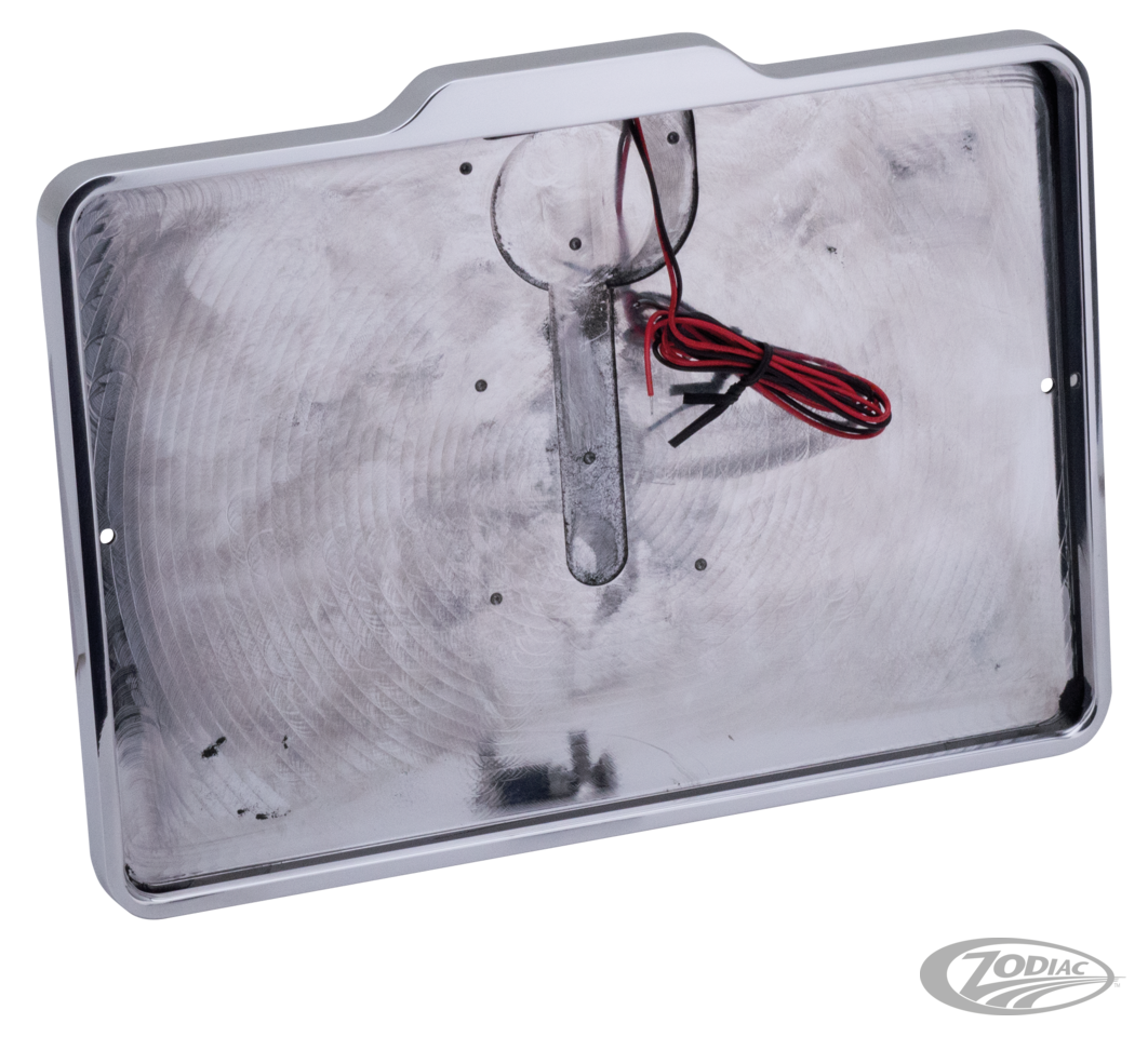 Frenched style one-piece machined Aluminum license plate frame with built-in and pre-wired LED license plate illumination with E-approval. These license plate frames clean up the tail of your bike, to give that smooth look. Available in true Gloss Black with extra clearcoat or in matt black.