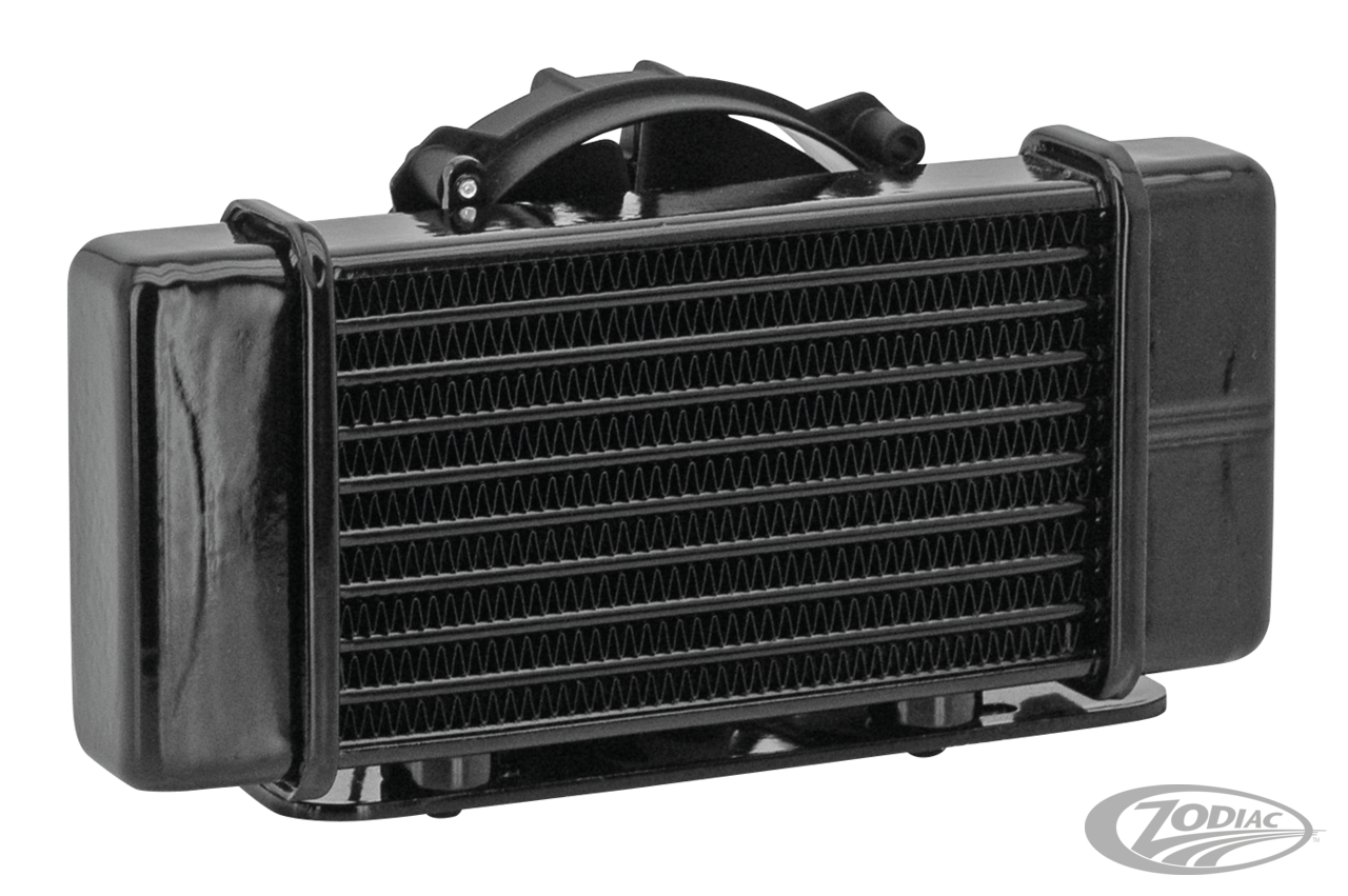 Fits Fuel Injected Touring 1995-1998 and Twin Cam 1999-2017, Black anodized Viscosity-Regulated Evo/Twin Cam offset oil cooler adapter with one 1/8"-27 NPT plugged port and Anti-Rotation device