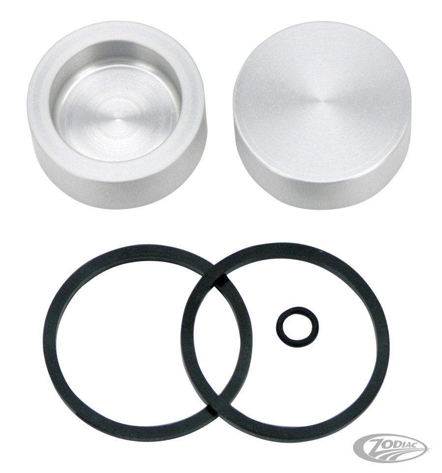 Add a smooth and custom touch to the rear end of your bike with this sprocket disc brake kit. A stock type master cylinder can be used to operate the brake. The sprocket disc brake kit consists of a stainless steel 51 tooth sprocket-rotor and a two piston caliper, with integrated bracket. Kit is supplied with all the necessary mounting hardware, pads, weld-on frame tab and a smooth billet cover to hide the mounting hardware. Available with a polished or black anodized caliper in combination with a drilled stainless steel disc sprocket.