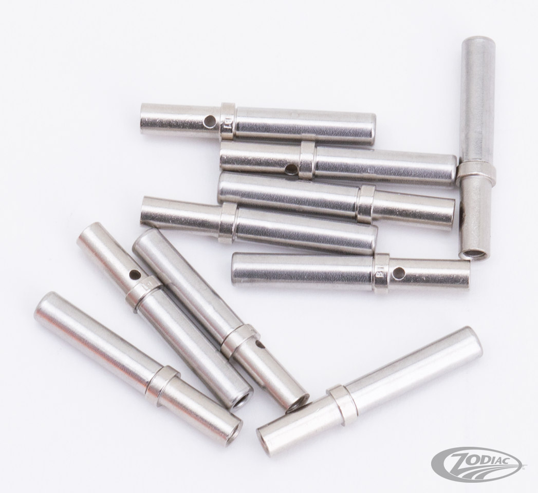 The greatest invention since electric cables! Ideal for custom wiring or as replacement on OEM wiring harnesses. Best proof of the quality from these connectors is that many OEM manufacturers including the Factory in Milwaukee use them. Our wide variety of components leaves nothing else to wish for. The waterproof connectors feature a special design lock-up system to secure the connectors and avoid accidental separation. Available for 2, 3, 4, 6, 8 and 12 pin connectors. All parts to make up a complete connector have to be ordered separately. For example you want to connect 5 cables, in order to do this you need: 1x6 Pin receptacle ZPN741519 1x6 Pin plug ZPN741522 1xWedge for 6 pin plug ZPN741523 1xWedge for 6 pin receptacle ZPN741520 Pin and socket contacts are available for 0.5-1.0mm² or 1.0-2.0mm² wires For 0.5-1.0mm² wires: 5xSingle pin contact ZPN741536 5xSingle socket contact ZPN741537 For 1.0-2.0mm² wires: 5xSingle pin contact ZPN741538 5xSingle socket contact ZPN741539 Note: This is just an example. If a different number of wires is used, a different combination of component is used.