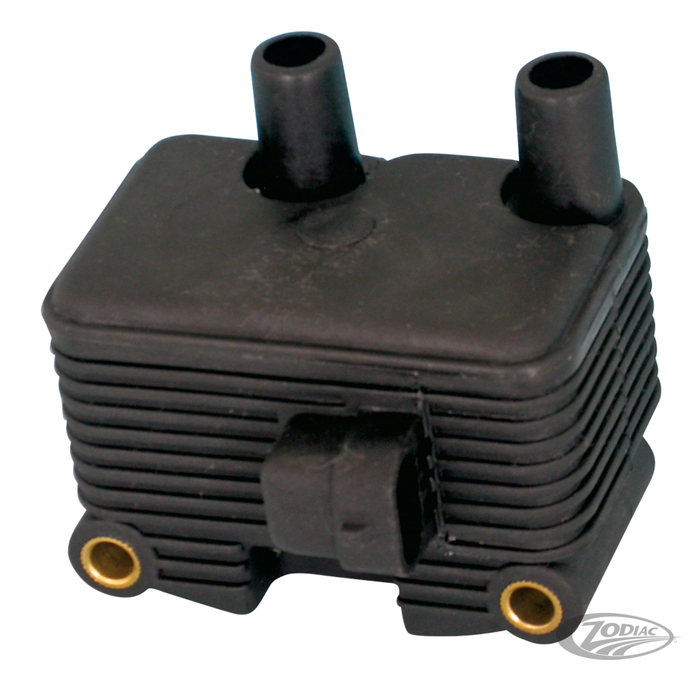 Replacement ignition coil for Twin Cam. Meets or exceeds OEM specifications. These coils have a primary resistance of only 0.7 Ohms, perfect for stock or aftermarket Twin Cam ignition systems, such as our AMM "P3" ignition. Fits carburetor equipped Twin Cam Softail 2000 -2006, carburetor equipped FLH/FLT 1999-2006, carburetor equipped Dyna Twin Cam 1999-2006 and Sportster 2004-2006 (OEM 31655-99). Note: These coils (or any other 0.7 Ohm coil) can not be used with points or conventional electronic ignitions. They will seriously damage your ignition system.