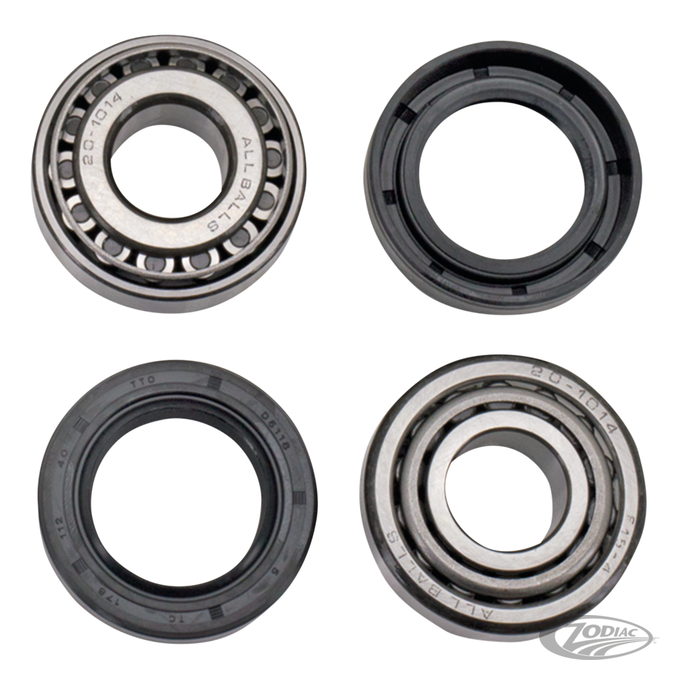 Fits front and rear on most 1973-1999 models. Contains two Timken style bearings for 3/4" axle (OEM 9052) and two 0.4" thick seals (OEM 47519-83A)