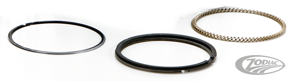 Hastings, the OEM supplier to Harley-Davidson, manufactures these rings. They are the same piston rings that are shipped with every new motorcycle as well as sold by Harley's parts department. All ring faces are pre-lapped for easier seating. The exclusive Flex-Vent oil control ring is the easiest of all designs to install because there are no right side ups or side downs. The Flex-Vent ring also assures a uniform pressure on the cylinder wall contacting rails and a positive oil control. Its open design affords 200% greater drainage capacity than conventional designs. Even with all these features Hastings rings are made available by Zodiac at low, more affordable cost. These superb quality piston rings are sold in sets for two pistons with the exception of the XL 883 and XL 1100 Evolution Sportster rings, which are sold in single sets.