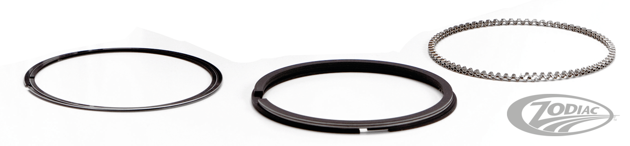 Hastings, the OEM supplier to Harley-Davidson, manufactures these rings. They are the same piston rings that are shipped with every new motorcycle as well as sold by Harley's parts department. All ring faces are pre-lapped for easier seating. The exclusive Flex-Vent oil control ring is the easiest of all designs to install because there are no right side ups or side downs. The Flex-Vent ring also assures a uniform pressure on the cylinder wall contacting rails and a positive oil control. Its open design affords 200% greater drainage capacity than conventional designs. Even with all these features Hastings rings are made available by Zodiac at low, more affordable cost. These superb quality piston rings are sold in sets for two pistons with the exception of the XL 883 and XL 1100 Evolution Sportster rings, which are sold in single sets.