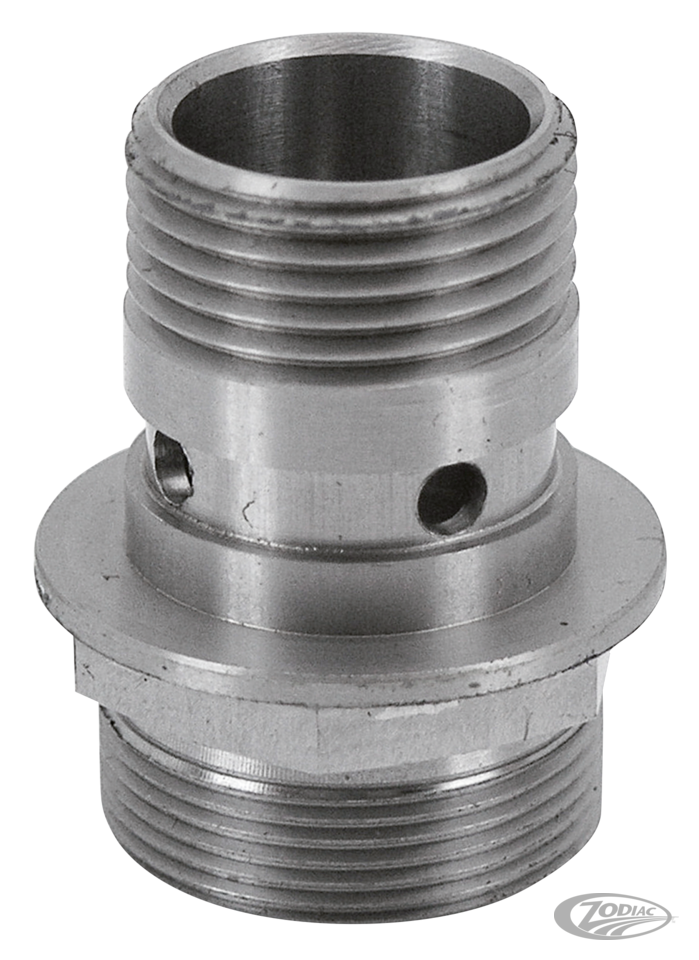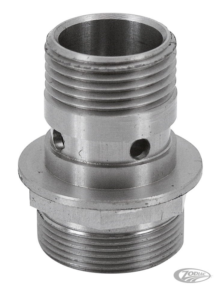 Pingel's stainless steel fuel valve adapter offers better flow and still retains the stock crossover connection on 1935-1965 two-piece gas tanks. In conjunction with a 22mm Pingel Power-Flo or Guzzler fuel valve this will drastically improve fuel supply. A must on tuned and especially today's high performance engines as the stock fuel valve set up simply can not cope with their fuel demand.