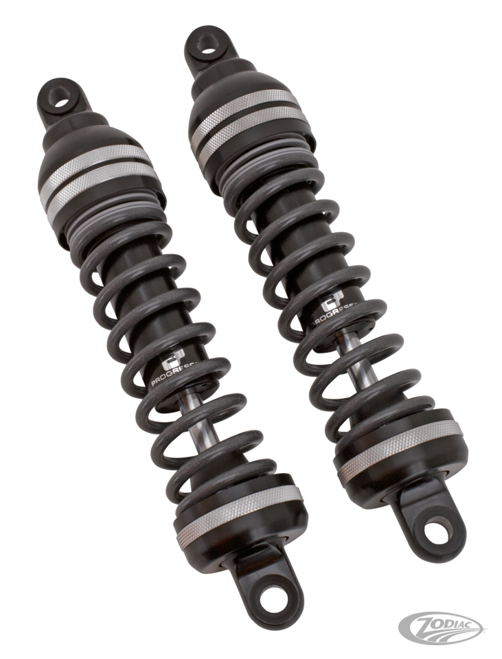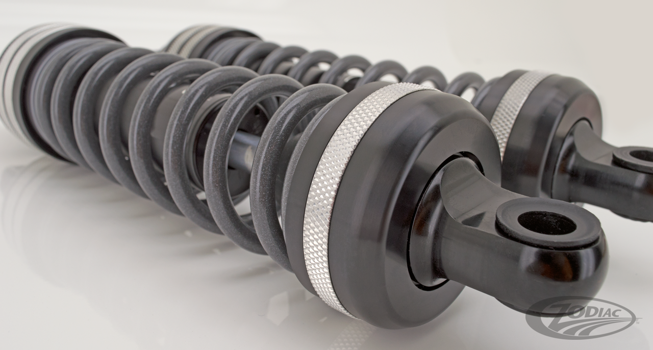 The 944-series shocks are specifically designed to deliver a comfortable ride at a 1" (2.5 cm) lower seat height. The 944-Series is a further development of the now obsolete 940-Series and use Frequency Sensing Technology (FST) in stead of the 940's IAS Inertia Active Sensing technology. Frequency Sensing Technology allows the shocks to sense the frequency of a bump and automatically adjust damping for superior ride quality. The 944 Ultra Touring shocks utilize all the suspension travel provided by the 13" (33 cm) eye-to-eye units, but provide a 1" (2.5 cm) lowered ride height. The unique Ultra Touring spring combination not only delivers a lowered ride height while its being ridden, but also while your bike is on the side stand.