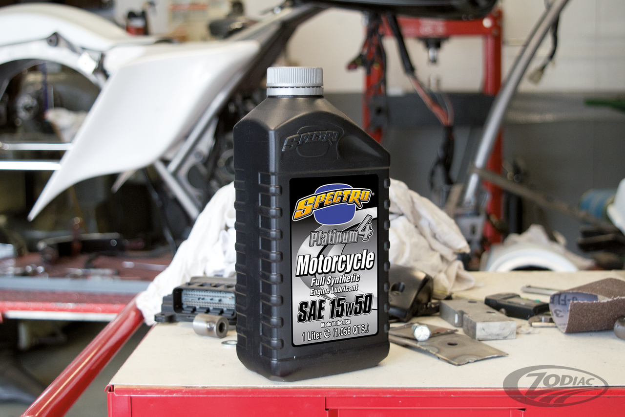 Spectro Platinum Synthetic is the ultimate state-of-the-art synthetic engine lubricant that incorporates the very latest A.P.I. SG additive technology. This lubricant is fortified with extremely shear stable Viscosity Index Improvers to provide smooth shifting and long life in motorcycle engines where transmissions or primaries share engine lubricant. Spectro Platinum Synthetic is the ultimate choice for all engines where severe conditions, such as extreme temperatures are encountered. This synthetic oil will reduce friction significantly over conventional motor oils. It is the ultimate choice for competition, off-road and street high-performance use.