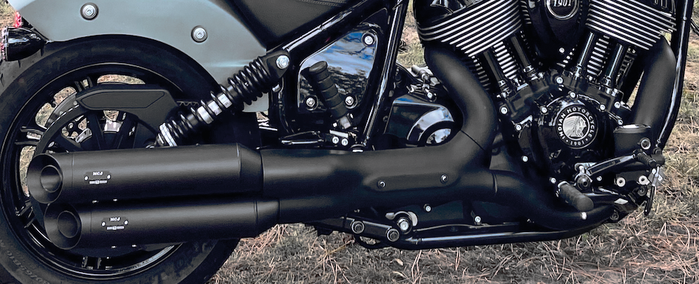Fits 2022 to present Indian Chief standard, Bobber, Bobber Dark Horse, Dark Horse, Sport, Super, Super Dark Horse and Super Limited (Euro-5)Order MCJ 90mm end caps separately, Slip-on mufflers, without end caps, Race 90, chrome (Euro-5)