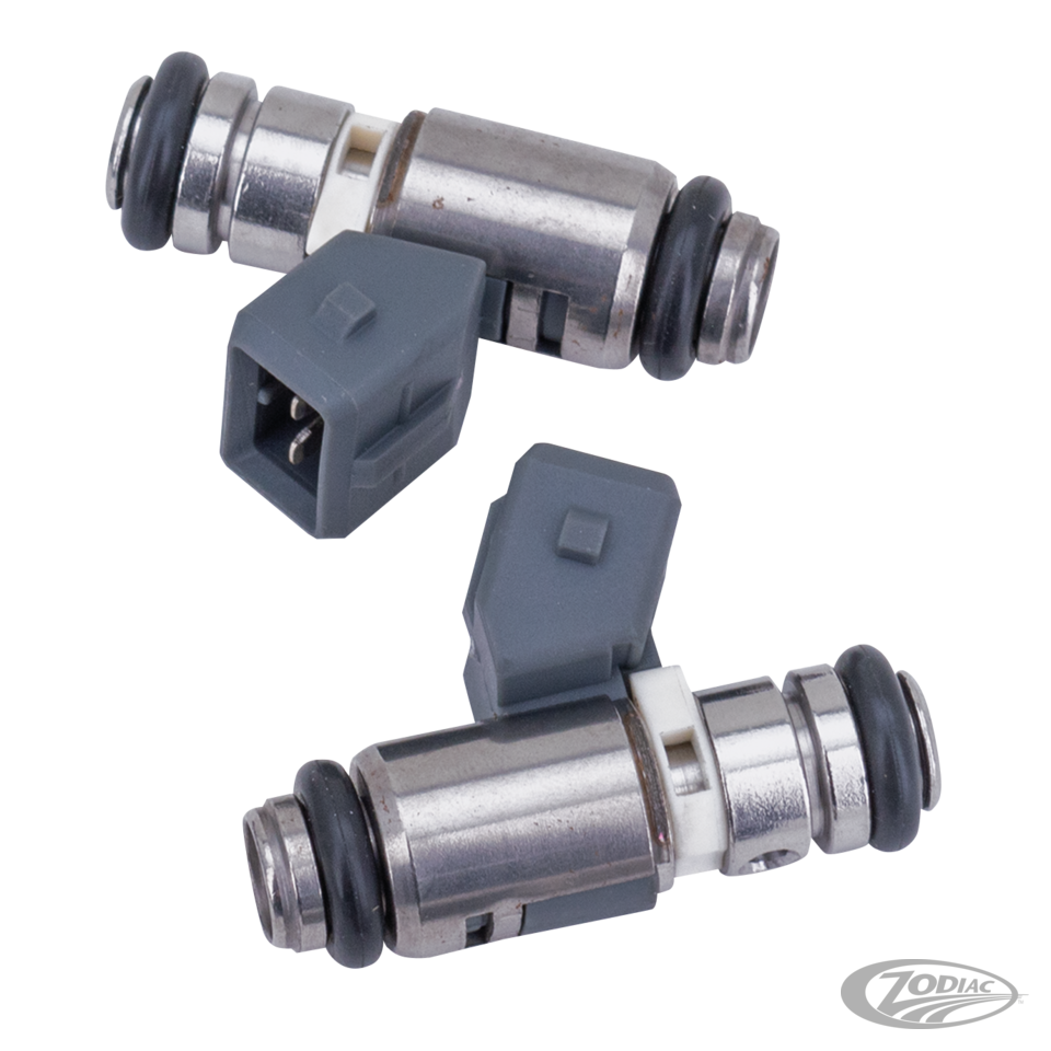 Fits 2001-2005 Softail, 2016-2017 Softail, 2002-2005 Dyna, 2017 Dyna 110CI, 2002-2005 Touring, 2008-2016 Touring and 2009-2016 Trike, Fuel injectors, white band, 4.3 grams/sec., pair, Cycle Pro (OEM 27609-01B, 27609-04)