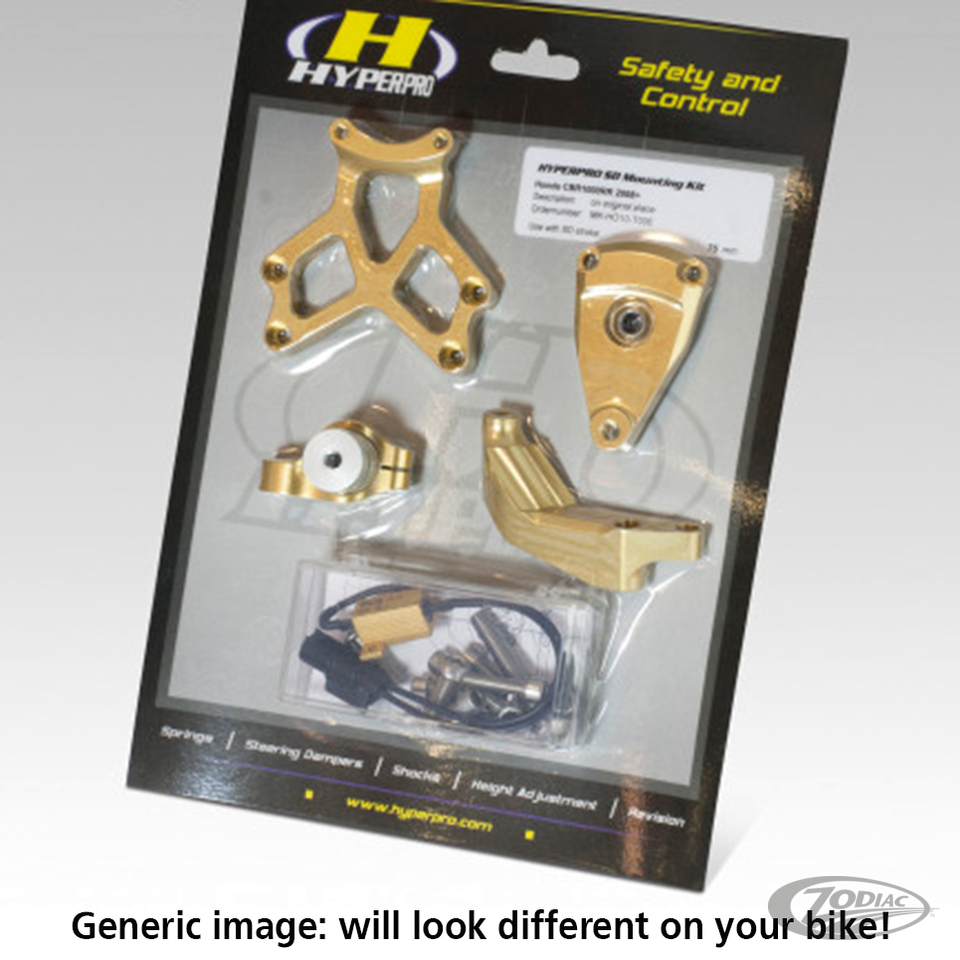 More and more Harley riders like to improve the performance of their motorcycle and ride them at higher speeds. But Harley-Davidson's are not build for high speed use. They want to break out in long, fast corners and start "Tail Snaking" when driving at high speed. Usually this is caused by instability of the steering. The use of the Hyperpro steering damper will drastically improve the stability and handling of your motorcycle. Highly recommended for all High Performance motorcycles and mandatory for racing. Hyperpro steering dampers are proudly made in the Netherlands and feature 22-step adjustable linear damping. Steering dampers and brackets are sold separately. Ready to install mounting bracket kits are available for a limited number of models. For other applications it is strongly advised to have the steering damper installed by a qualified mechanic using the individual frame- fork- and damper tube clamps. A 140mm stroke steering damper works in most custom fitments.