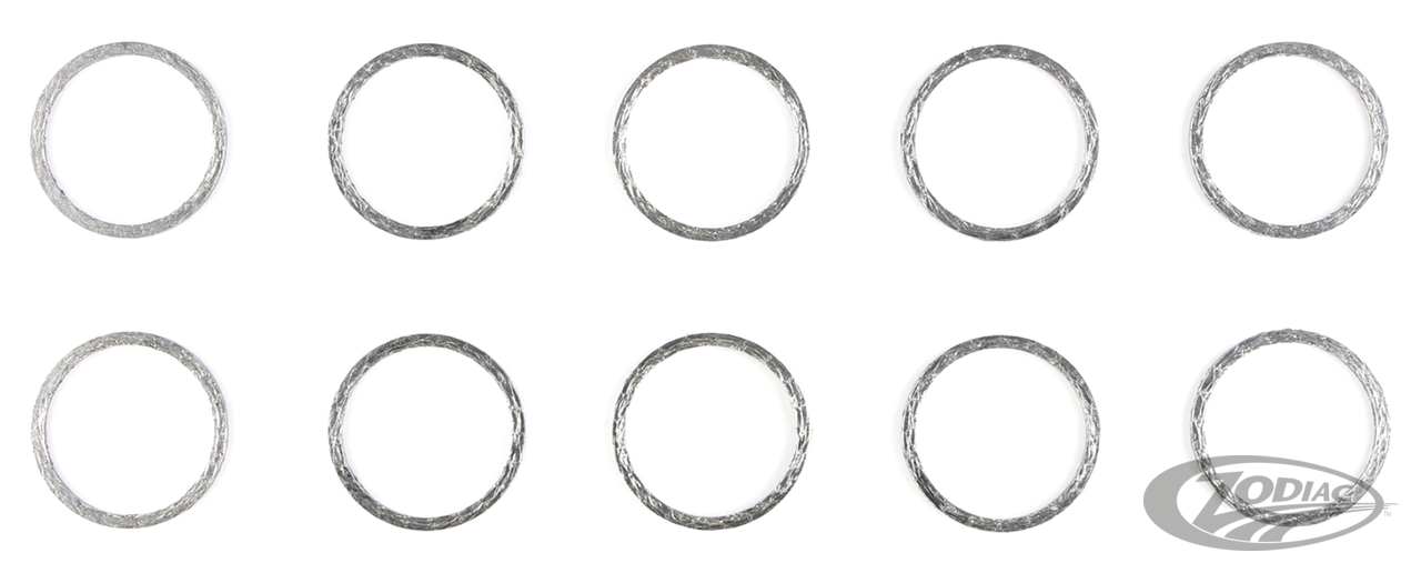 Introduced on the 1984 Evolution Big Twin as a flat gasket (OEM 65324-83), than changed to an internal conical shape in 1992 (OEM 65324-83A), and than The Factory changed back to the flat type in 2009. Harley even offers a flat type knitted stainless steel wire type as a set of 2 (OEM 17048-98) The flat type is preferred by many because of their better flow characteristics, others prefer the conical type because of its better sealing. No matter which style you prefer, they fit all air cooled Buell, Evolution Sportster, Evolution Big Twin, Twin Cam, Milwaukee Eight and S&S X-Wedge.