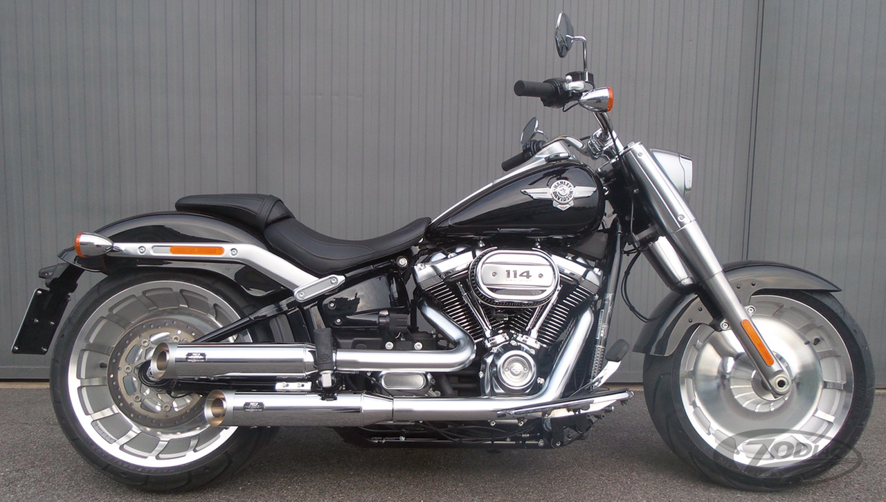 FLFB & FLFBS Fat Boy, FLSL Slim, FXBB Street Bob, FXBR & FXBRS Breakout, FXLR & FXLRS Low Rider 2018-2020 & FXST Standard 2020Order end caps separately, Slip-on mufflers, without end caps, Royal 90, chrome (Euro-4)