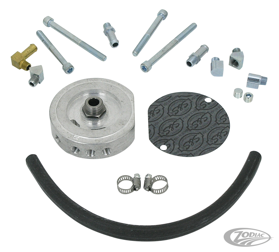 This billet oil filter mounting bracket can solve a common problem for engine builders and custom bike builders alike. It fits any generator engine with 5/16" generator mounting holes, and it replaces the hard to find oil filter bracket for 1986-1990 Sportster. This part is needed for any engine build with S&S crankcases for Sportster or Buell, including the S&S SB-Series engines. On a generator style Big Twin engine the filter bracket bolts to the generator mounting pad in place of the generator. This is a must for alternator/generator engines that use an alternator charging system, or straight generator engines with magneto ignitions and no charging system. The oil filter bracket seals off the cam chest and provides a convenient place too for a spin on oil filter. The bracket is machined for easy routing of an oil cooler in all applications, and accepts the stock oil pressure sending switch on Sportster.
