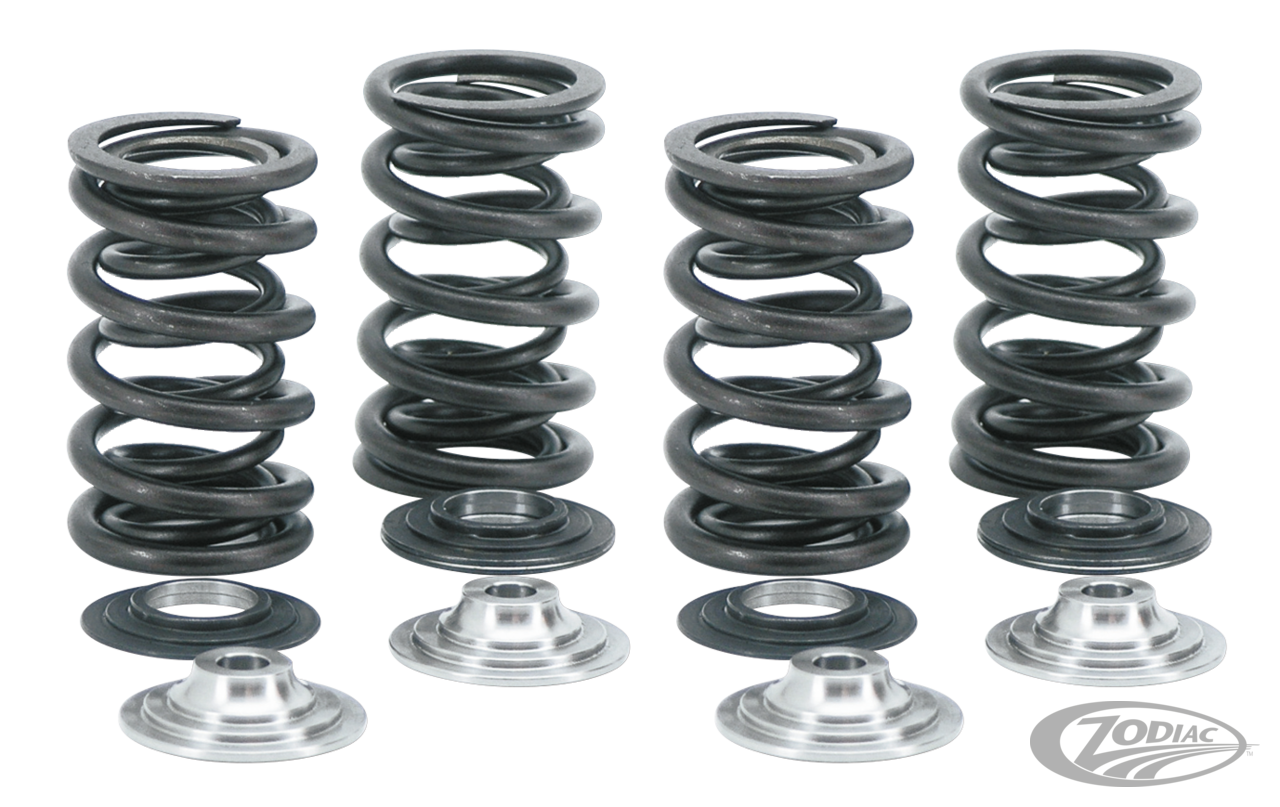 Fits Twin Cam 2005-2017 and 2004-2022 XL and XR Sportster. For use with up to .655" valve lift. Seat pressure 190 lb. Comes with hard anodized aluminum or titanium retainers and steel clad Viton seals to fit OEM style valve guides. Use with OEM valve keepers., Steel lower collars only, for use with Heat Treated Steel retainers, set