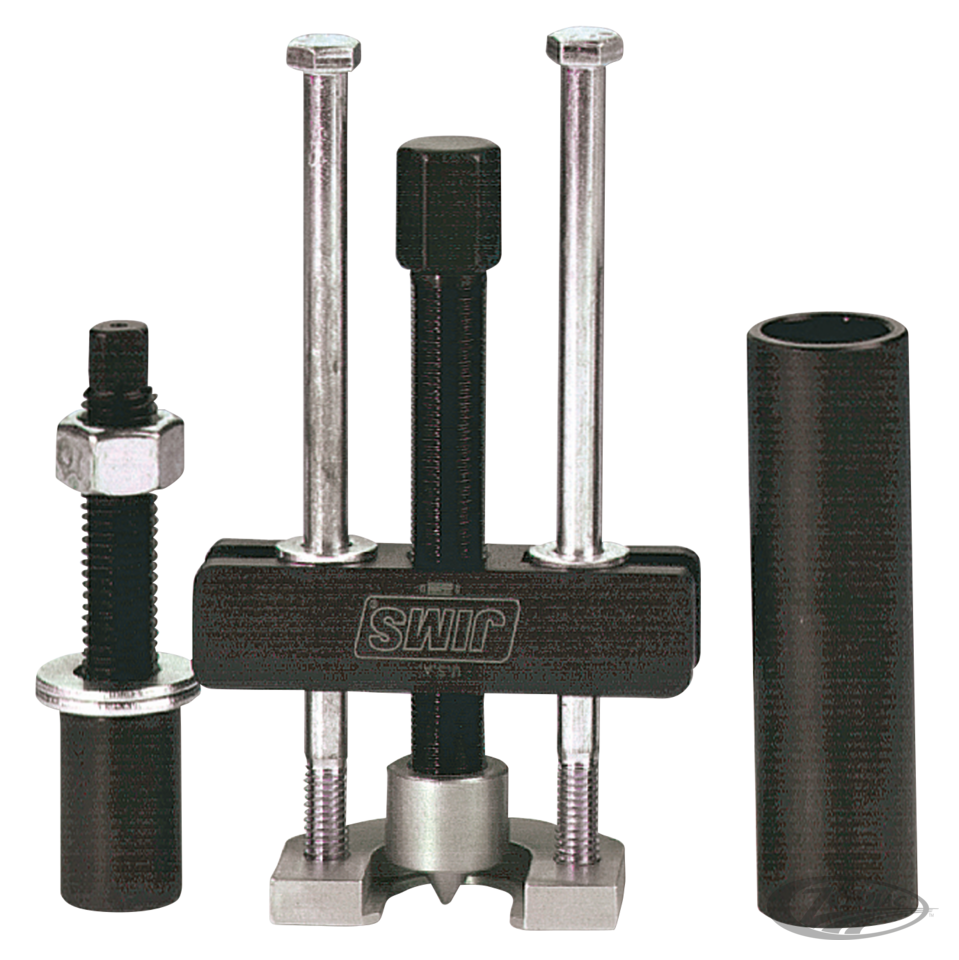 American made tool to install or remove the bearing inner race on the transmission main shaft of late 1984-2000 Big Twin and 1999-2006 Twin Cam 5-speeds.