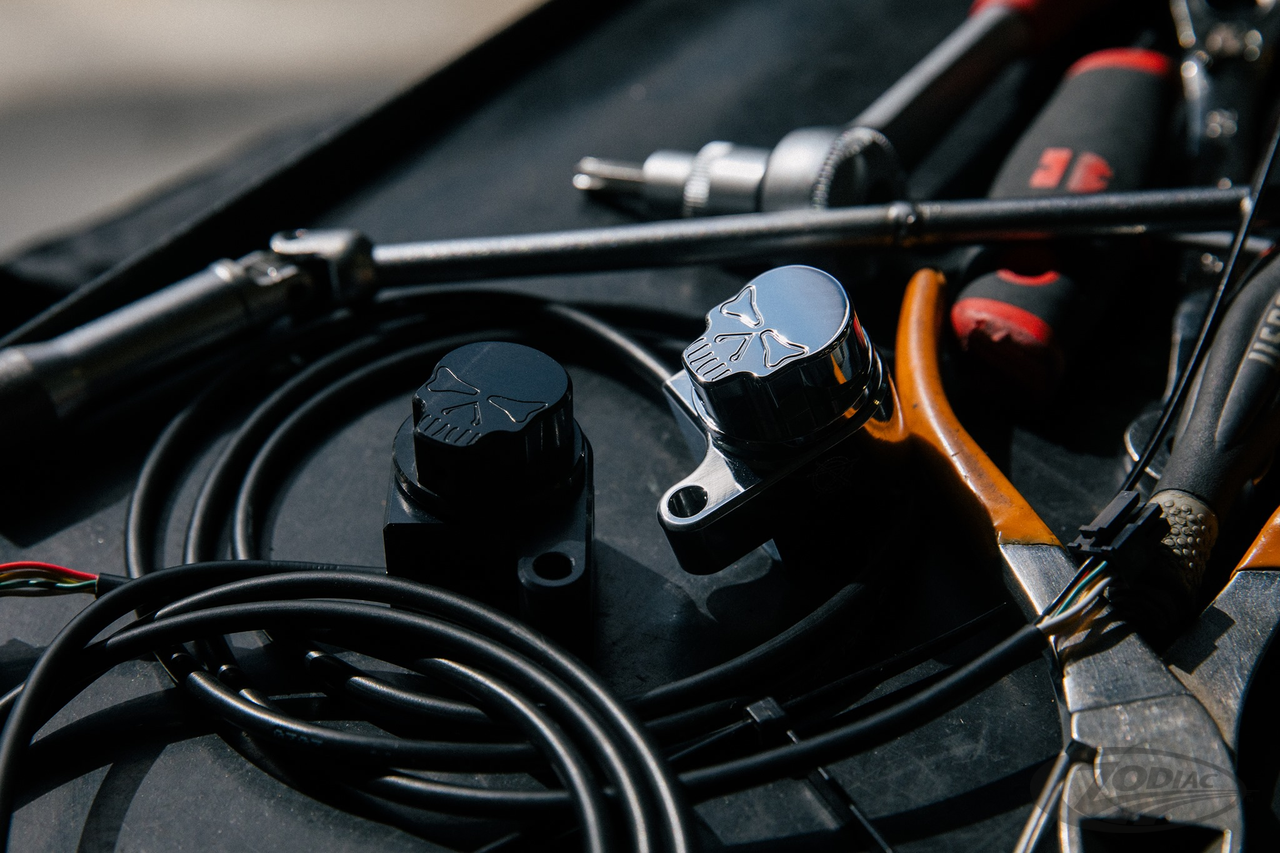 Ride By Wire, 5 performance modes for your Harley-Davidson. A very easy to install accessory that allows the rider to change throttle response with just a turn of the skull handlebar mounted switch. Works with stock EFI-tuning but also with flashed tuning, piggyback EFI tuners, Diag4Bike, Thundermax and PowerVision.
