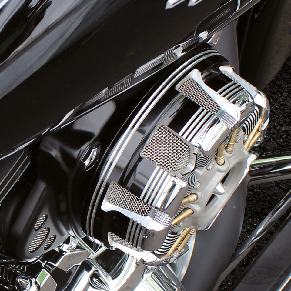 This cover fits over the stock throttle body, servo motor and wiring. It's classic design blends with the engine and hides the unsightly bits. Subtle chrome bolt accents evoke the soul of engines past while complimenting the modern engine components. Stamped steel construction with durable black satin powder coating.