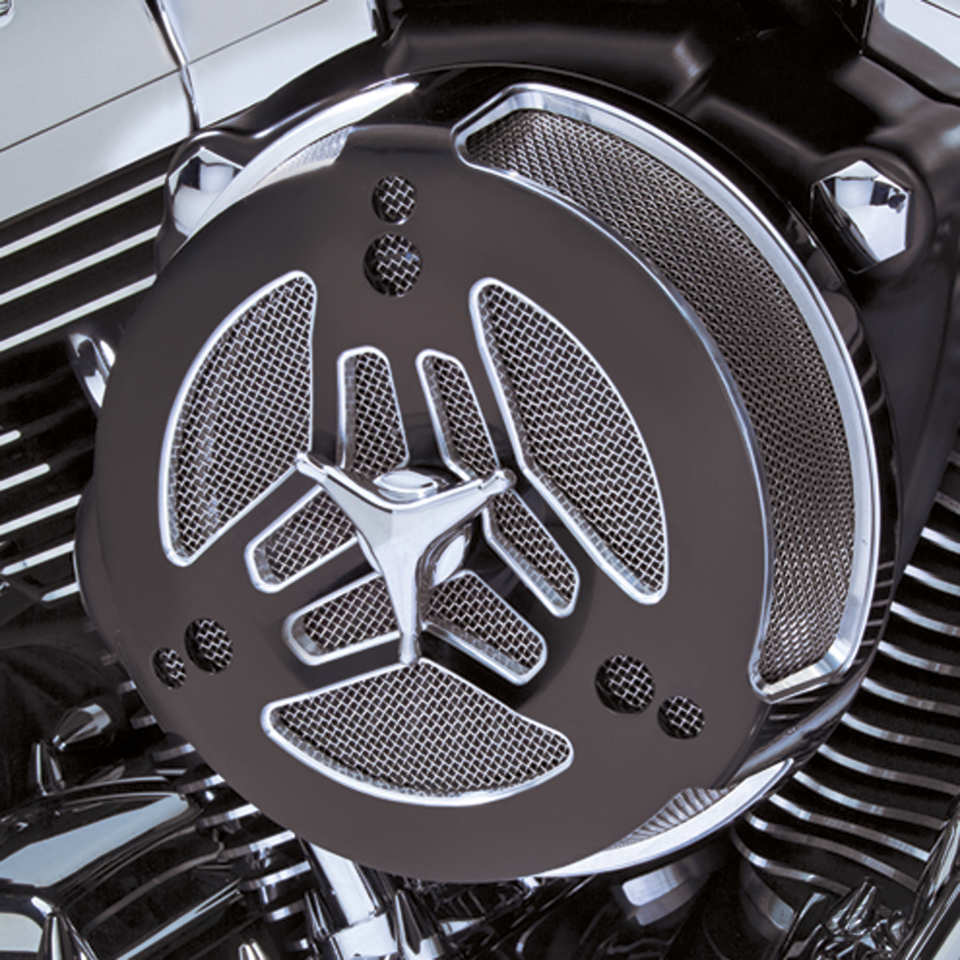 Ciro has re-invented the timeless round air cleaner by creating their very own high-flow, ultra low-profile air filter to be the heart of the new Ciro Tri-Bar air cleaner. A full 1 1/4" thinner than stock, while flowing significantly more air, your leg will not notice this air cleaner, but your engine most definitely will as the Ultra-Flow filter produces a massive 45% increase in air flow over a stock 2014 air filter. The innovative design also incorporates an OEM style crank case breather. Fits all 2008-2016 Touring and Trike, as well as Fuel Injected Throttle-By-Wire Softail and Dyna thru 2017.