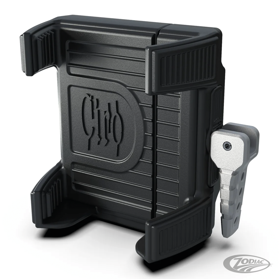 These accessories allows you to mount your phone or camera to any Ciro ball stud. Has bolt patterns and stud mounts for most common phone and camera mounts. When you do not want to worry about draining your phone battery while riding again, we suggest the Ciro Premium Smartphone mount with its built in 1.3 amp USB plug, so you can charge as you ride using the USB cable from your device. The CyberCharger is best for you when you have a Smartphone that supports wireless charging. Mk II CyberChargers feature a slim arm design that allows additional clearance for the buttons on certain models of smartphones. An upgrade kit to change a Mk I into Mk II is also available. The Budget and Premium holders fit devices from 2 1/8" to 3 1/2" (54 to 89mm) wide, the CyberCharger takes devices from 2 3/8" to 4" (60 to 102mm) wide. For action cameras we have a specific adapter available.