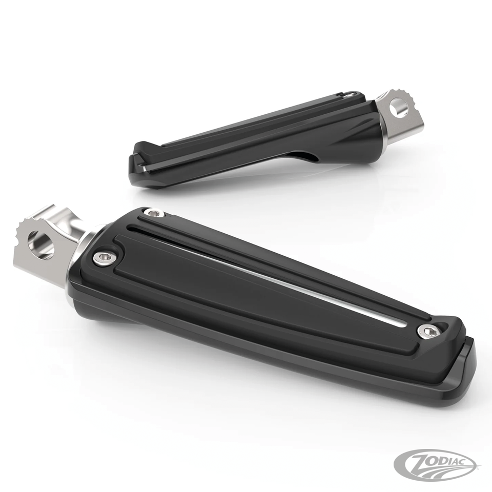 Foot pegs with standard male mounts for standard female clevis, Rail style foot pegs, pair, black