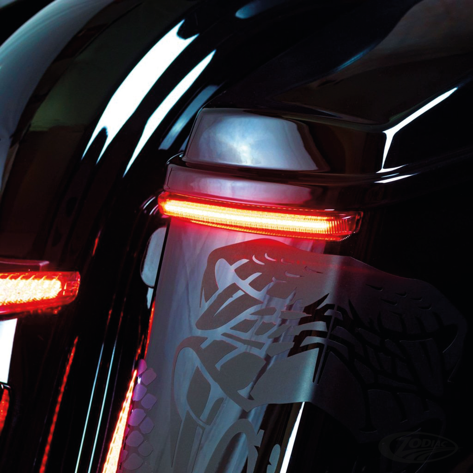 The Ciro LED Bag Blades are one of the cleanest ways to add light to the back of your bike. The low profile light housing sits right below the lid of your bag to blend seamlessly into the back of the bike. The Bag Blades feature super bright run, brake, and sequential amber or red turn signals to be sure you are seen day or night. The connectors must be changed to use them on bikes without running lights, such as HDI International Export models.