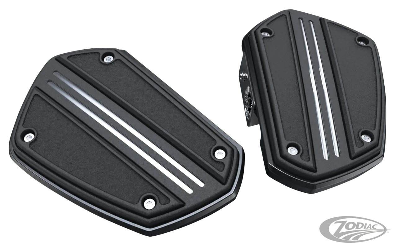 These 6 1/2" (16.5cm) long and 4 1/4" (10.8cm) wide mini floorboards feature a versatile rotating mounting that allows installation on stock 1/2" female clevis mounts in stock, 1" (2.5cm) forward and 1" (2.5cm) backward position. The thick rubber padding reduces vibration and increases grip. They can be used to replace stock foot boards or to replace passenger foot pegs. Note: Not intended for use as replacement for driver foot pegs.