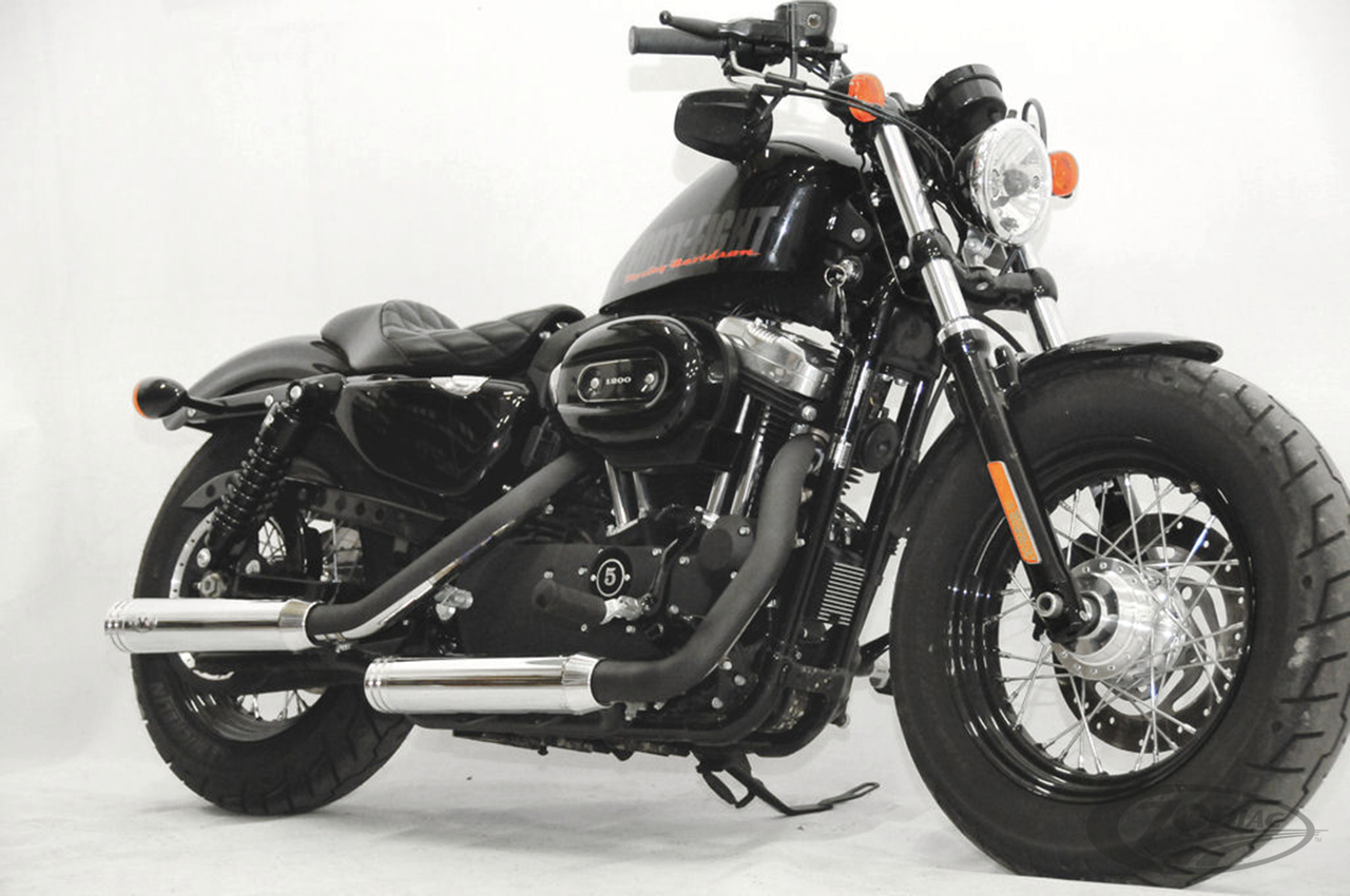 Racing version, fits all 2014-2022 883 & 1200 XL Sportster models, Ceramic Black 80mm diameter Slash Cut slip-on muffler set