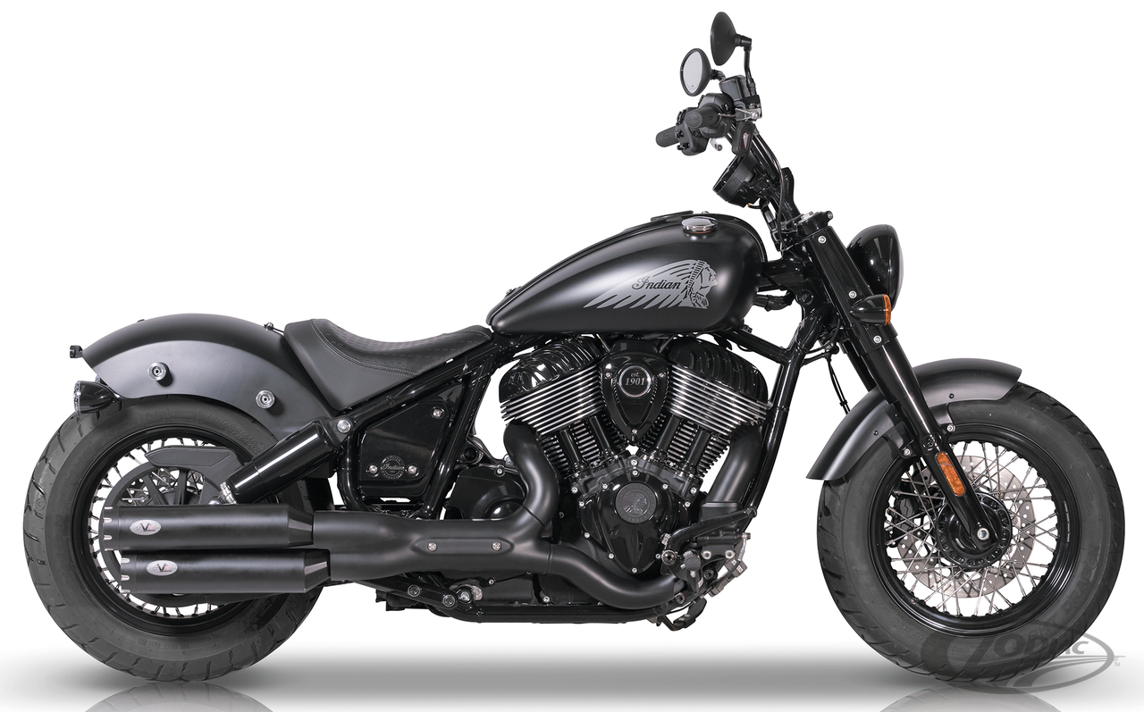 Fits all 2022 to present Indian Chief and Super Chief models, Ceramic Black 90mm diameter slip-on muffler set (Euro-5)