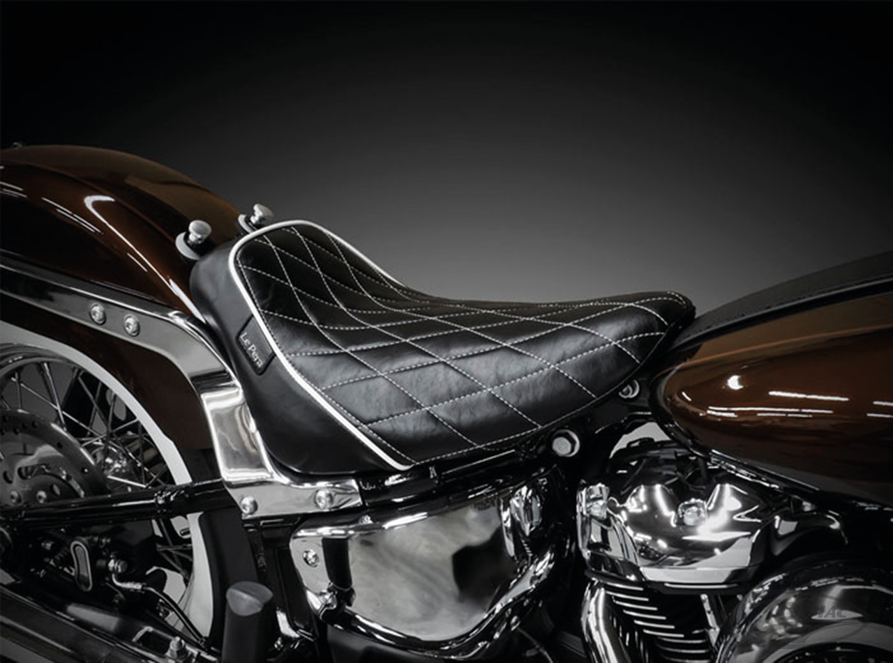2018 to present FLDE Deluxe, FLHC & FLHCS Heritage Classic and 2024 to present FLI Hydra-Glide Revival, Bare Bones solo with White Diamond stitching
