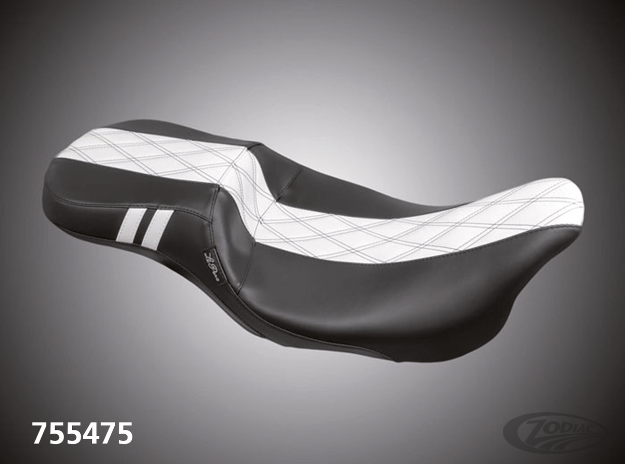 The Outcast offers an incredible amount of comfort for the driver. The removable backrest offers the extra support you are looking for, yet take out the backrest and you have a killer custom look to show off your bike. The 2-up seat has an extra wide, 11" (29.7cm) rear seat area for long trips with passengers and the Daddy Long Legs provides more leg room for long riders while keeping the same great style as the original.