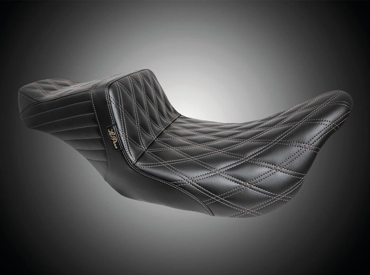 Fits all 96, 103, 107 & 114CI Touring 2008 to present and all 117CI Touring 2018-2023, TailWhip Seat, Chestnut Double Diamond stitch