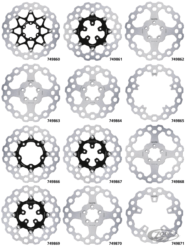 Galfer brake discs for use with stock and stock-replacement calipers. Full floating discs have stainless steel outer bands with black coated steel centers, held by and clear stainless floating elements. As with every brake disc it is strongly recommended to install new brake pads with a new brake disc.