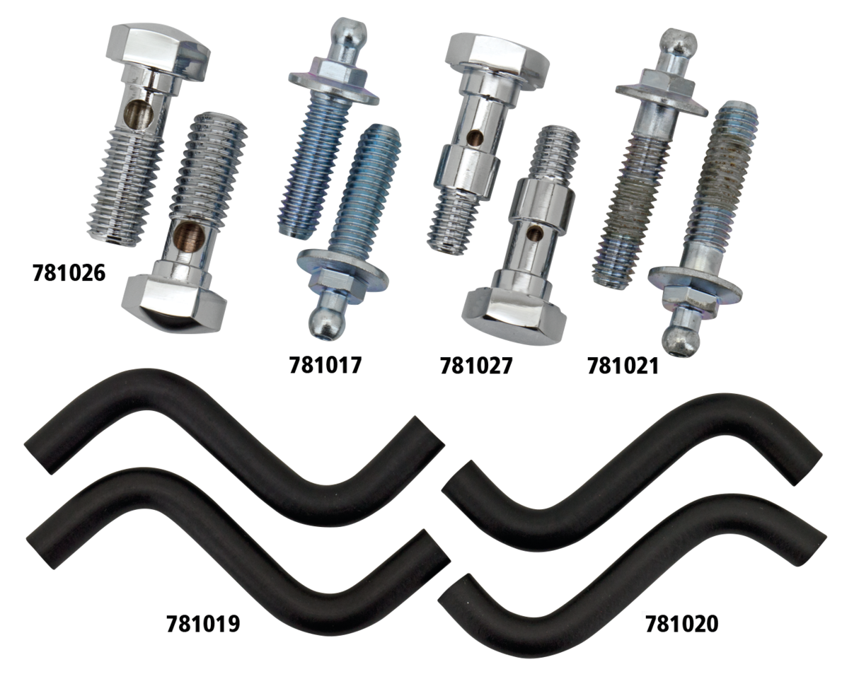 Hex head banjo style bolts are commonly used with aftermarket air cleaners and loose banjos or breather tube setups.