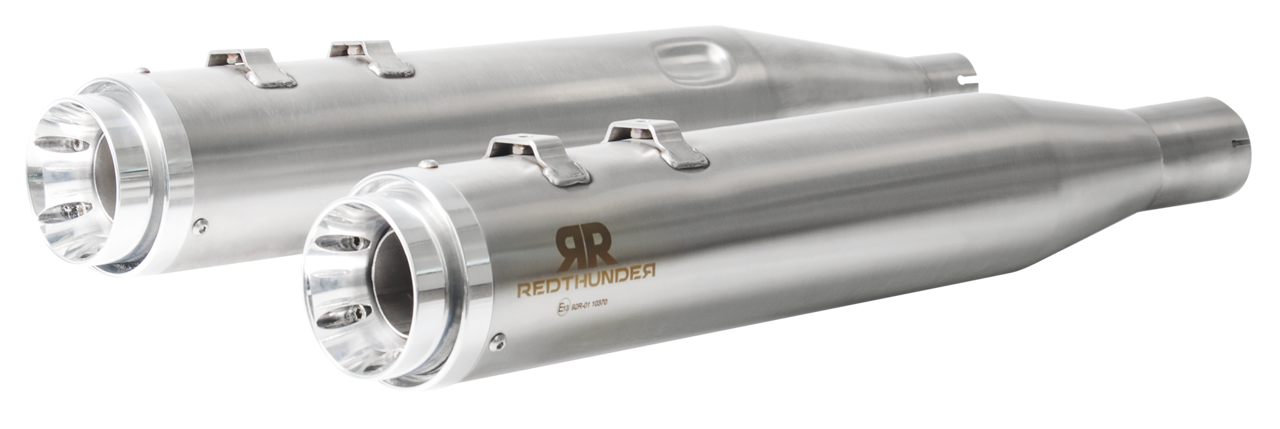 Slip-On mufflers install quick and easy on the stock exhaust headers. Tailored by Italian craftsmen from stainless steel for the muffler body and billet aluminum for the end cap and meticulously calibrated to offer a sound that ranges from deep, low tones to a more aggressive high-rpm sound for your Electra Glide, Road King, Road Glide, Street Glide or Ultra.