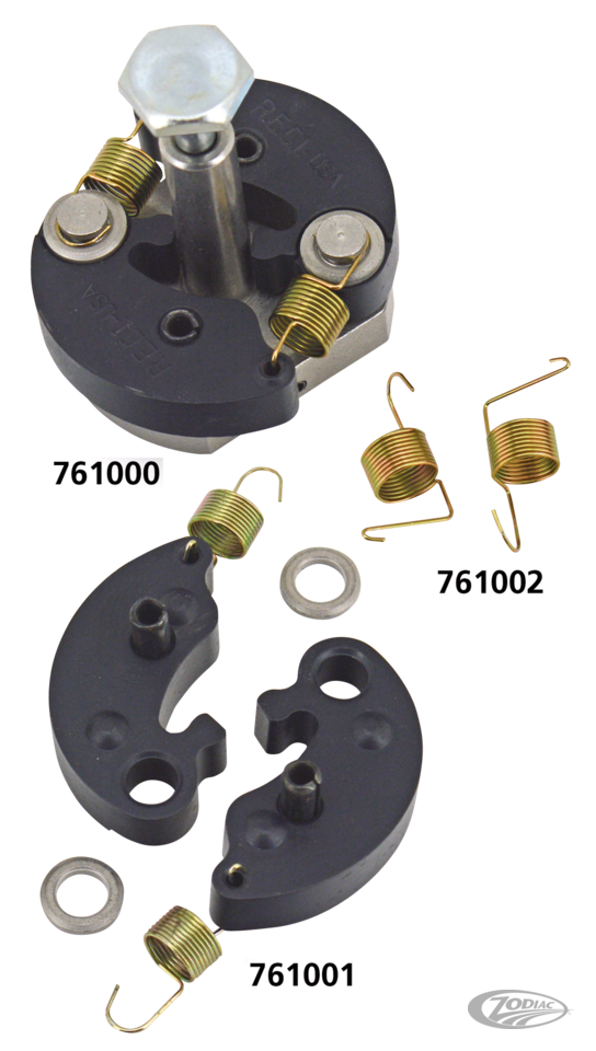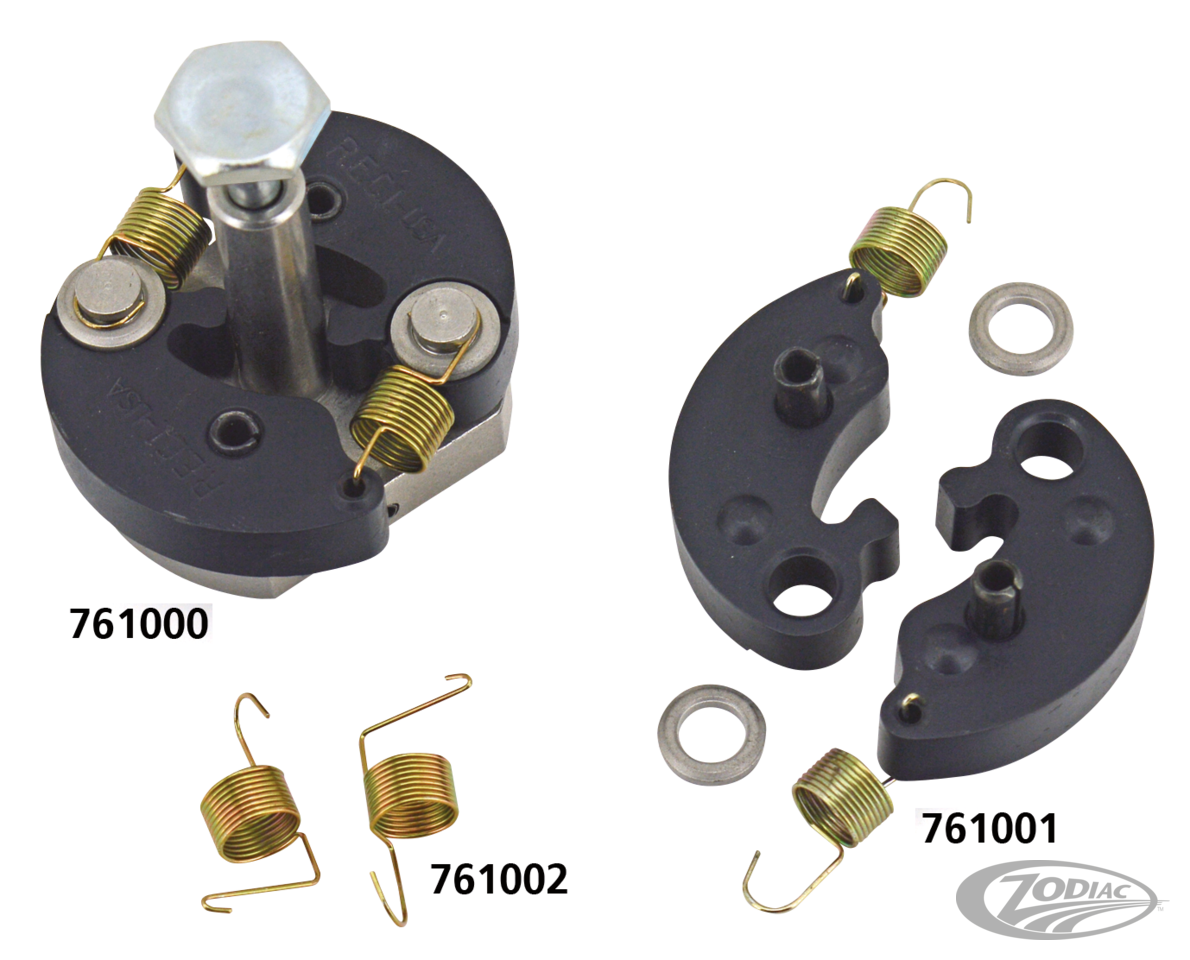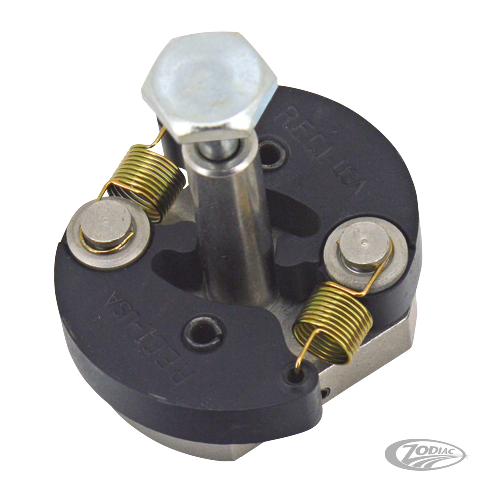 We offer technology from the USA in this advance weight assembly made by American Prime Mfg. The shaft and plate are made from stainless steel and are machined to exact tolerance. The weights are heat treated and coated with High-Tech polymers and are held in place by stainless steel pins. The springs are made from high quality phosphate-coated spring-tempered music wire and wound to exact specifications for proper advancement of the weight, then the springs are heat treated and white plated for durability. Smoother idle and throttle response are assured. This superior assembly can be used for all points systems and Dyna S, Daytona TwinTec VT-I and other electronic ignition systems that require a mechanical advance unit. Note: Cam not included.