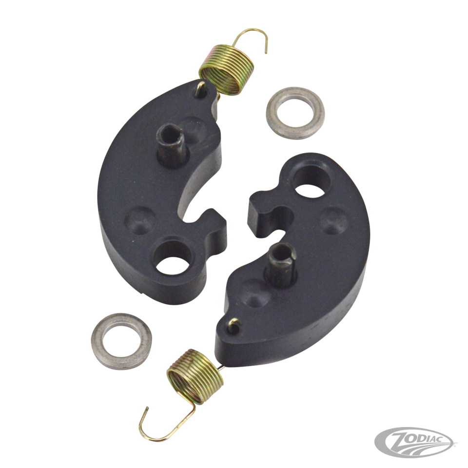 We offer technology from the USA in this advance weight assembly made by American Prime Mfg. The shaft and plate are made from stainless steel and are machined to exact tolerance. The weights are heat treated and coated with High-Tech polymers and are held in place by stainless steel pins. The springs are made from high quality phosphate-coated spring-tempered music wire and wound to exact specifications for proper advancement of the weight, then the springs are heat treated and white plated for durability. Smoother idle and throttle response are assured. This superior assembly can be used for all points systems and Dyna S, Daytona TwinTec VT-I and other electronic ignition systems that require a mechanical advance unit. Note: Cam not included.