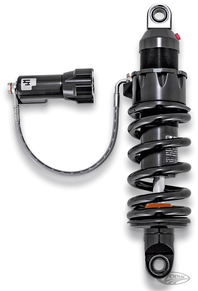 These 465 Series shocks from Progressive Suspension for the 2018 and later Softail models with their Cantilever Monoshock rear suspension feature 5-step adjustable rebound damping and adjustable spring pre-load. For those who want to adjust the spring pre-load without using tools we also have them with RAP Remote Adjustable Preload. This allows adjustment with a simple turn-of-the-knob. Shock mounting eyes feature spherical bearings, whereas the OEM shocks have a rubber bushing and needle bearing in those spots. State of the art high pressure gas monotube shock design. It utilizes a large 46mm bore and deflective disc piston for precise damping. The beefy 16mm hard chrome shaft rides on custom Viton seals for low friction and leak free life. The 465 is custom tuned for each application and is completely optimized for each bike, from the damping and spring rate all the way down to the bounce bumper which results in increased suspension compliance. For those who often ride with a passenger and/or heavily packed these shocks are also available in a Heavy Duty version with higher rate springs fitted. These shocks fit all 2018 to present Softail models so you can go for stock length, or a longer shock for increased ride height or a shorter shock for that Low Rider look. A 10-12mm shorter than shock will reduce ride height with1", a 24mm shorter than stock shock will reduce ride height with 2", 10-12mm longer shock will increase ride height with 1", a 24mm longer than stock shock will increase ride height with 2". FLDE = Softail DeLuxe FLFB & FLFBS = Softail Fat Boy FLHC & FLHCS = Heritage Softail Classic FLI = Softail Hydra Glide Revival FLSB = Softail Sport Glide FLSL = Softail Slim FXBB & FXBBS = Softail Street Bob FXBR & FXBRS = Softail Breakout FXDRS = FXDR 114 FXFB & FXFBS = Softail Fat Bob FXLR, FXLRS & FXLRST = Softail Low Rider FXST = Softail Standard