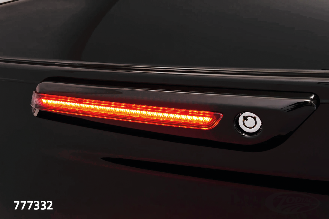 Ciro streamlined the look of a lighted alternative for your OEM hinge covers and reflectors to transform the look of your saddlebags. Available with a light smoke or red lens, featuring red run and brake lights plus animated red turn signals. They come with quick disconnect, plug-n-play harness for easy saddlebag removal.